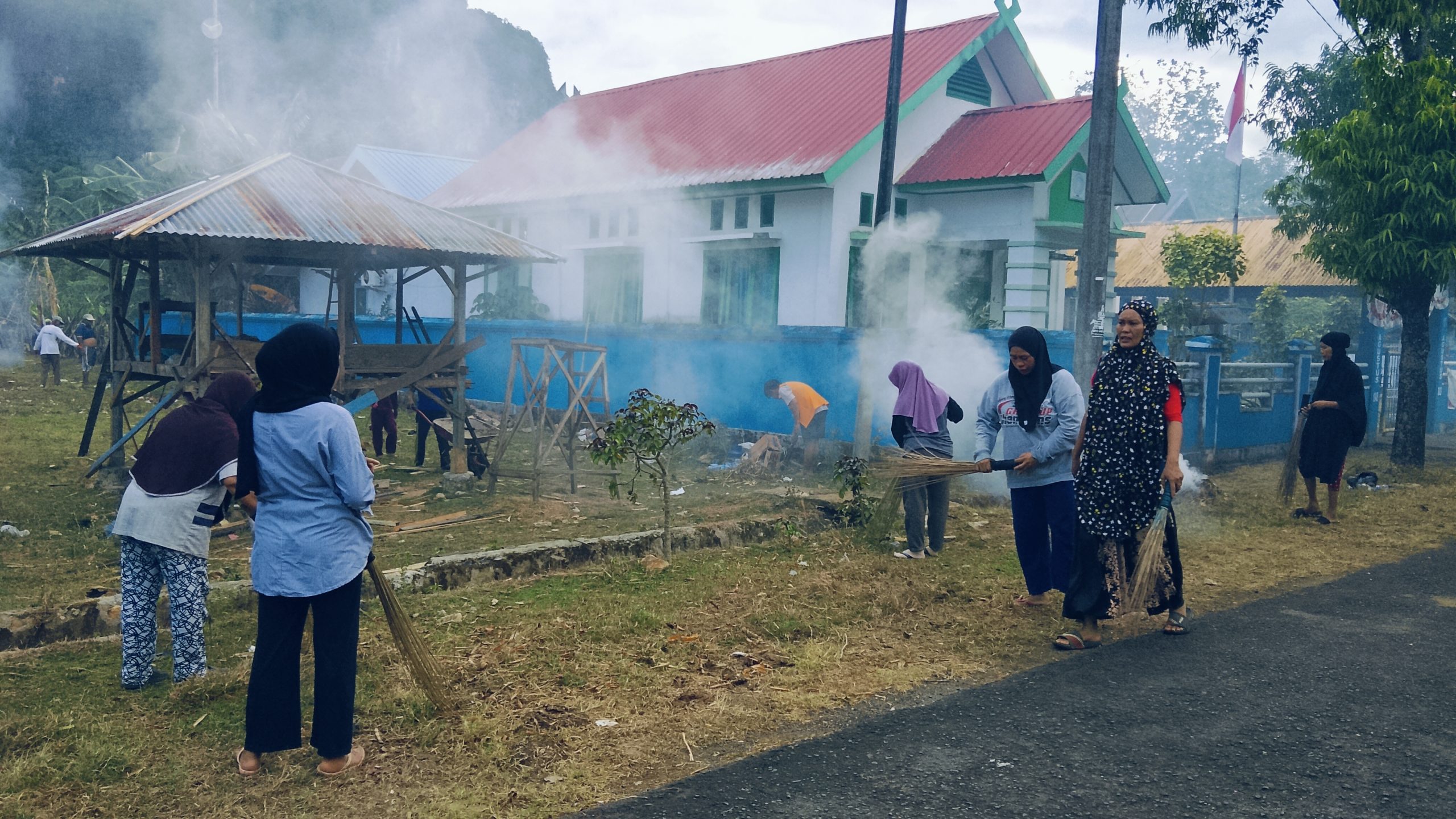 Warga Kampung Bultap Bersama Mahasiswa KKN-PPL UNM Gelar Kerja Bakti Bersihkan Halaman dan Sekitar Kantor Kelurahan Tonasa Satu