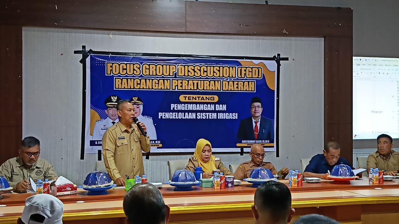 –klivetvindonesia.com— Pemerintah Kabupaten Sidrap menggelar Focus Group Discussion (FGD) dalam rangka penyusunan Rancangan Peraturan Daerah (Ranperda) tentang Pengembangan dan Pengelolaan Sistem Irigasi. Kegiatan ini berlangsung di ruang rapat pimpinan lantai III Kantor Bupati Sidrap, Senin, 29 September 2025.