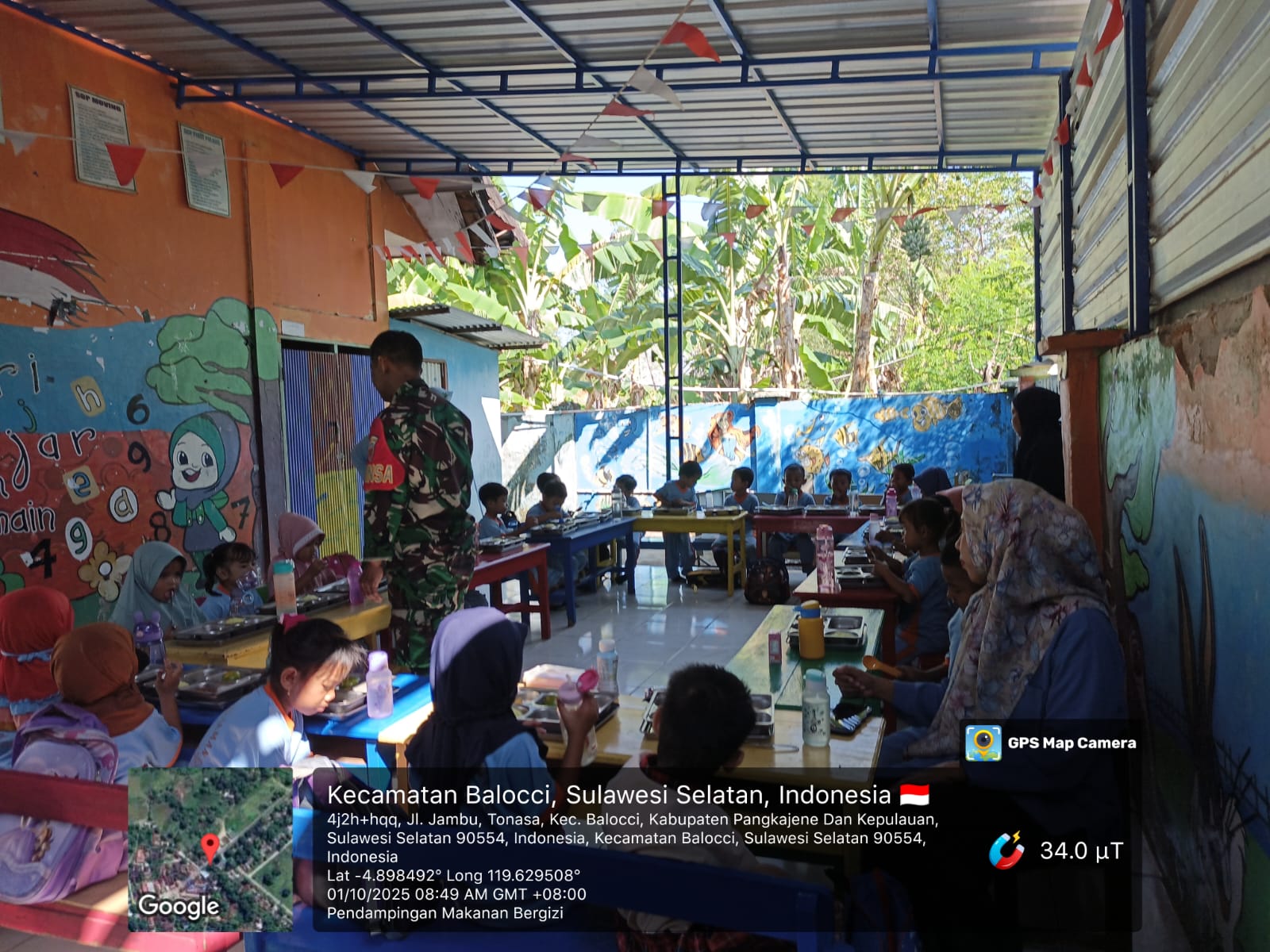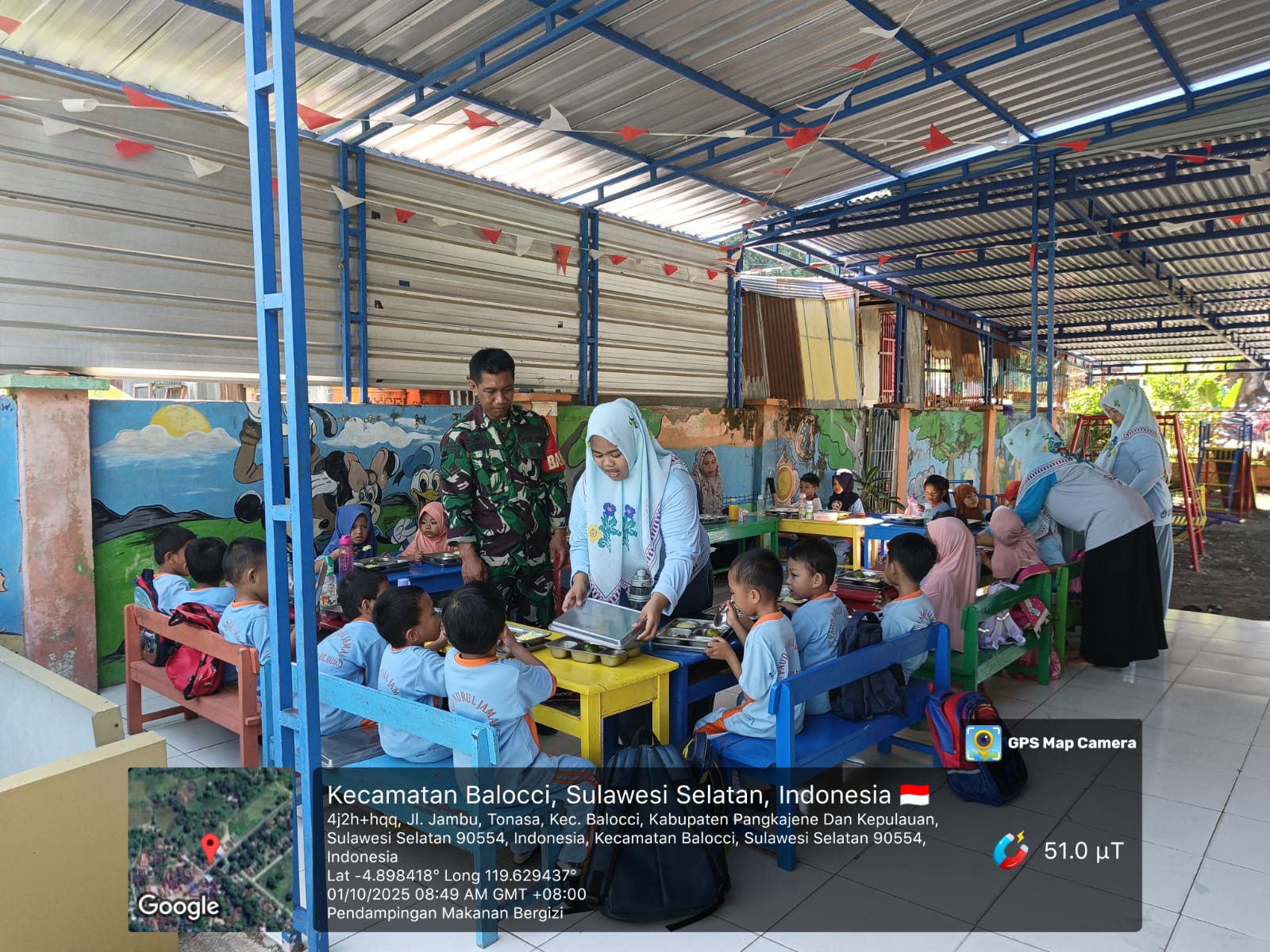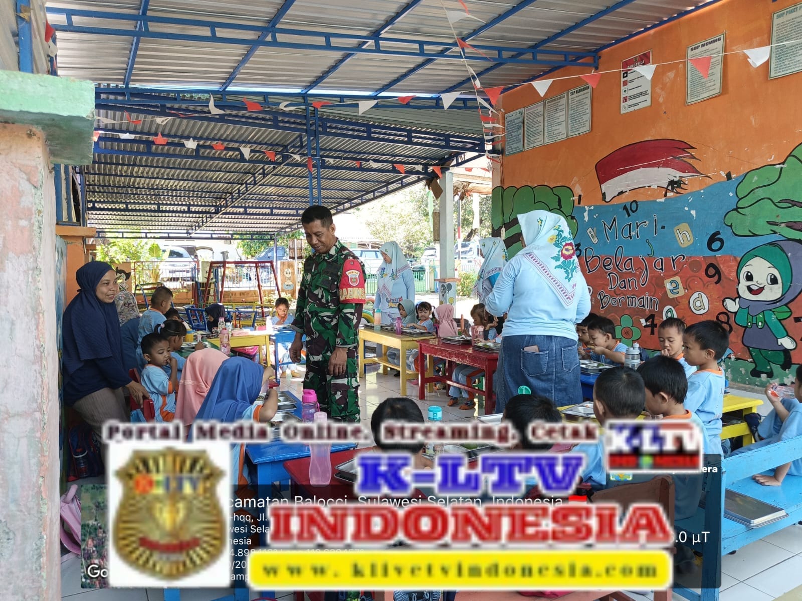 klivetvindonesia.com,Pangkep – Program Makan Bergizi Gratis (MBG) yang digagas pemerintah terus mendapat dukungan penuh di berbagai daerah, termasuk di Kabupaten Pangkep. Pada Rabu, 1 Oktober 2025, Babinsa Kelurahan Tonasa, Serda Suhardi, melaksanakan kegiatan pendampingan makan bergizi bagi siswa-siswi PAUD/KB Nurul Jaman Majennang yang berlokasi di Kelurahan Tonasa, Kecamatan Balocci, Kabupaten Pangkep.