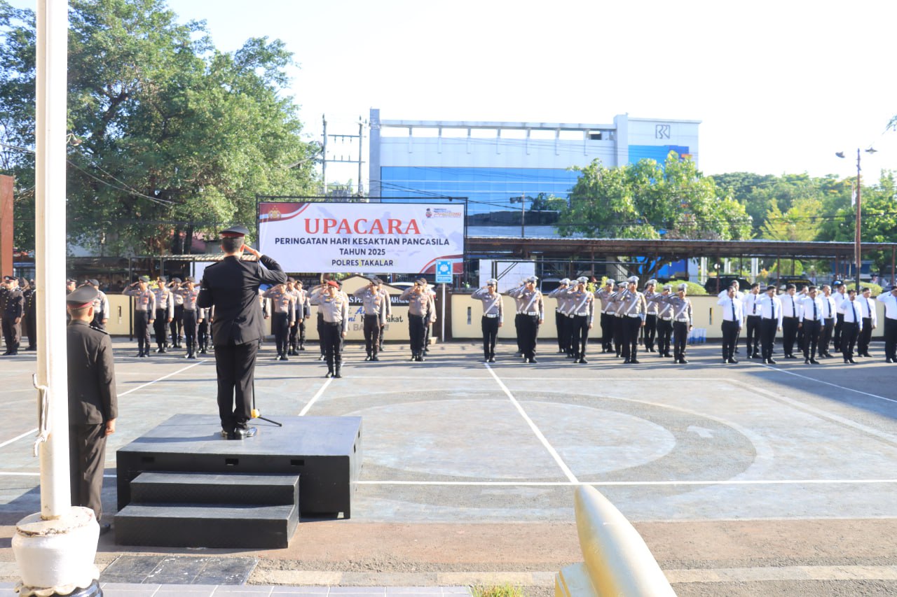 Takalar – Polres Takalar menggelar upacara peringatan Hari Kesaktian Pancasila yang berlangsung khidmat di Lapangan Apel Mapolres Takalar, Rabu pagi (1/10/2025). Upacara dipimpin langsung oleh Kapolres Takalar AKBP Supriadi Rahman, S.I.K., M.M dan dihadiri para Pejabat Utama, Kapolsek jajaran, Perwira, Bintara, serta ASN Polres Takalar.