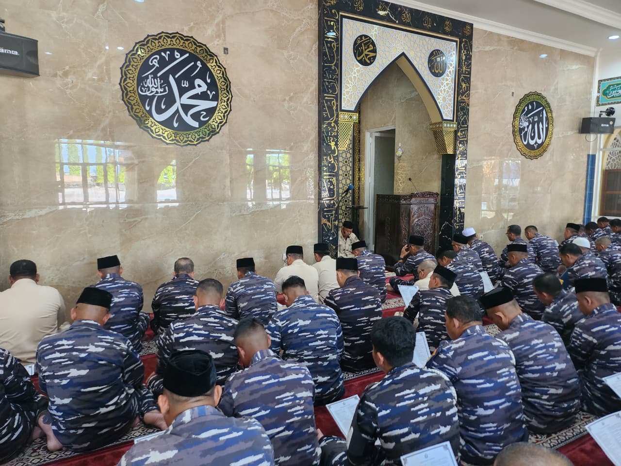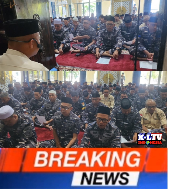 klivetvindonesia.com — Dalam rangka memperingati Hari Ulang Tahun ke-80 Tentara Nasional Indonesia (TNI), prajurit Yonmarhanlan VI Makassar bersama Aparatur Sipil Negara (ASN) KodAeral VI melaksanakan doa bersama yang penuh khidmat di Masjid Jamiatul Bahari, Markas Komando Daerah Angkatan Laut (Makodaeral) VI, Sabtu (4/10/2025).