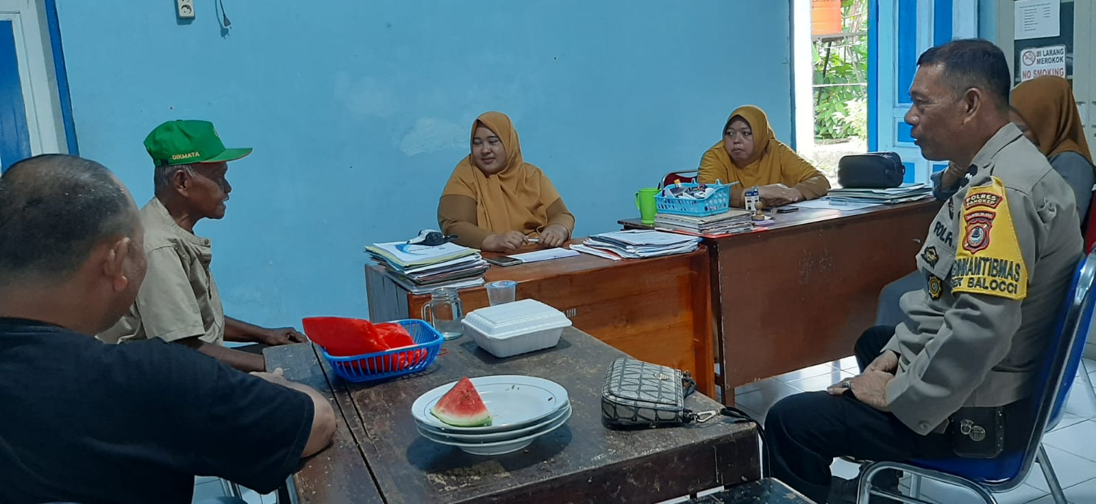 Kedatangan Aipda Amiruddin disambut langsung oleh Lurah Kassi beserta jajaran staf kelurahan dan beberapa warga yang tengah beraktivitas di kantor tersebut. Kunjungan ini bukan hanya sebagai ajang silaturahmi, tetapi juga untuk menyampaikan pesan-pesan penting terkait keamanan dan ketertiban masyarakat (Kamtibmas) di wilayah Kelurahan Kassi, Kecamatan Balocci, Kabupaten Pangkajene dan Kepulauan (Pangkep).
