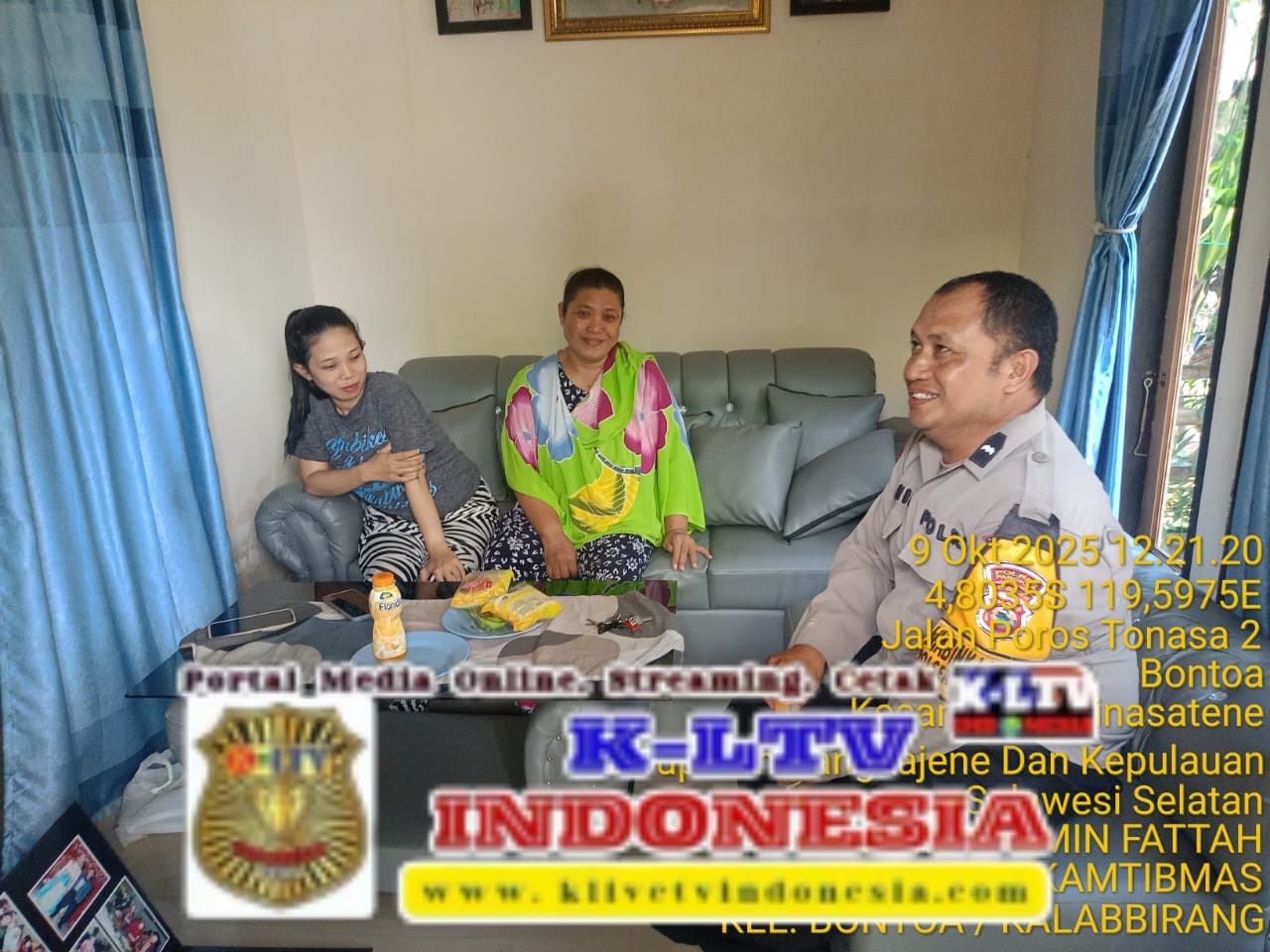 klivetvindonesia.com,Bhabinkamtibmas Kel.Bontoa Polsek Minasatene Polres Pangkep Aipd Muhaemin melaksanakan sambang warga di kampung Bontoa dalam kelurahan Bontoa kecamatan minasatene kabupaten Pangkep, pada hari Kamis (09/10/2025).