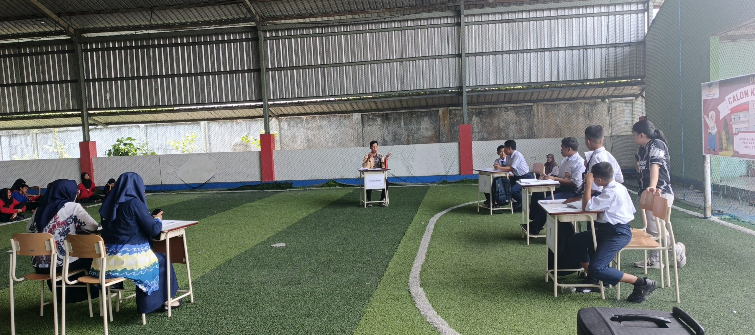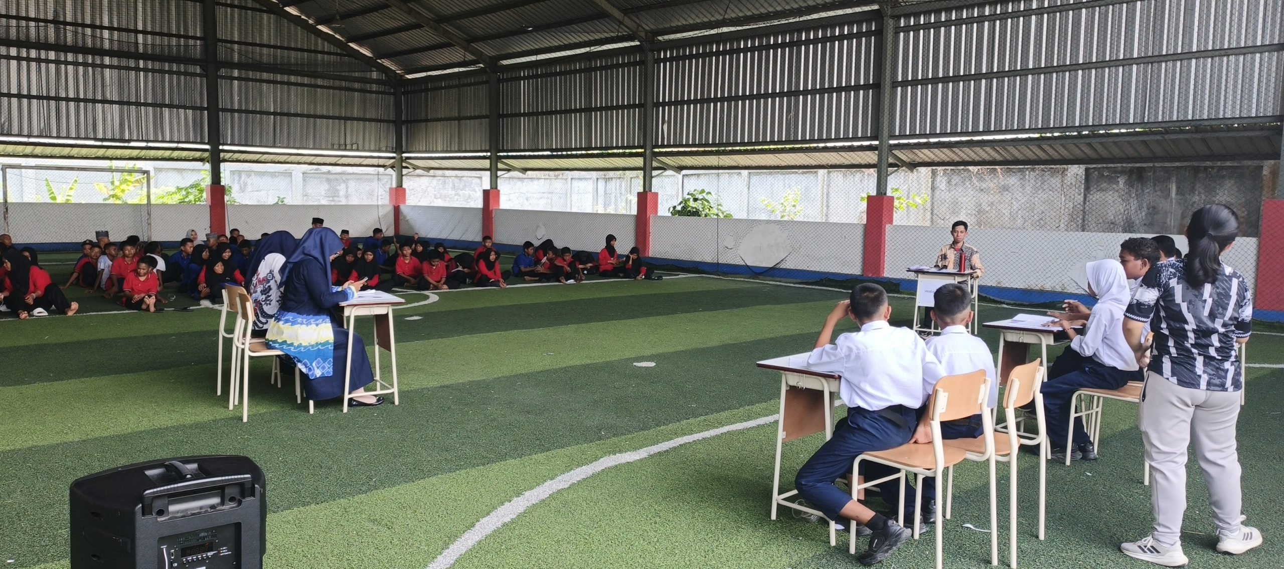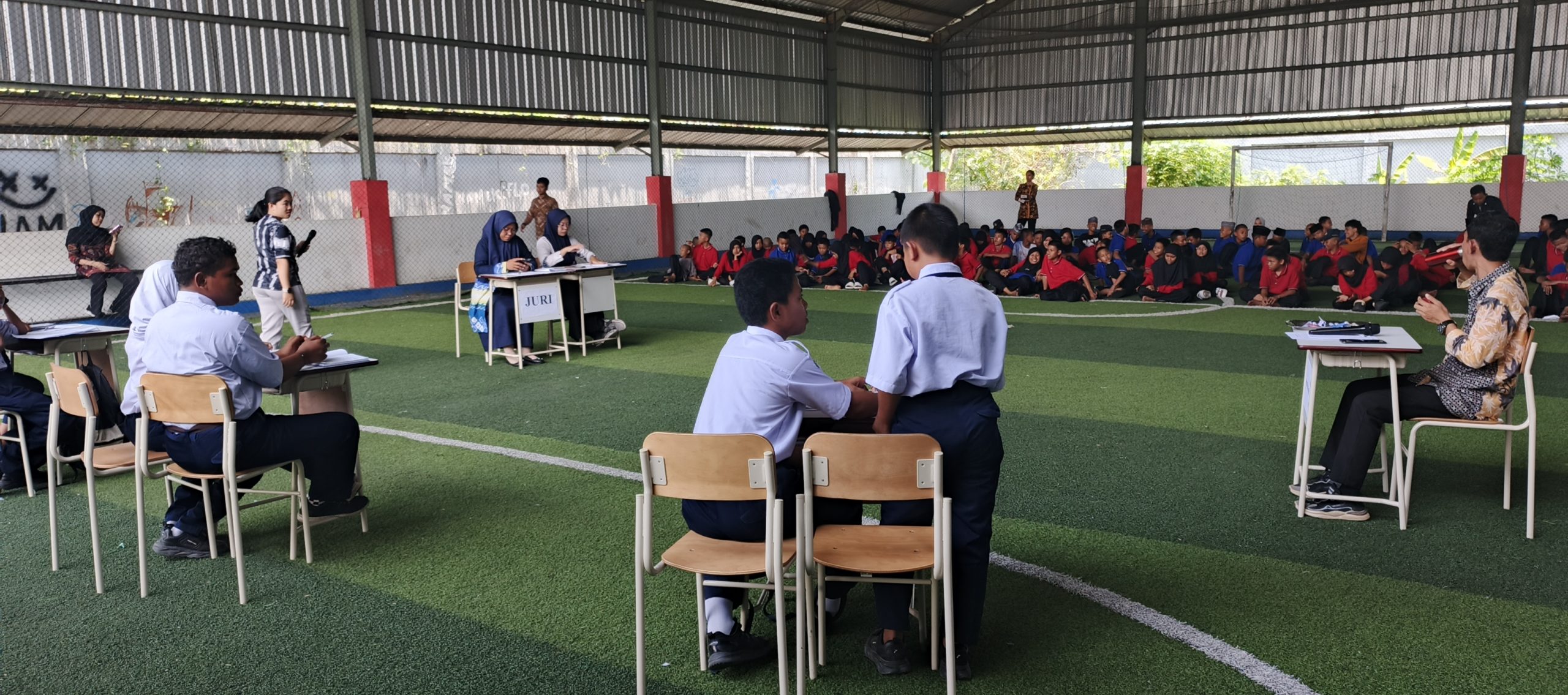 Kehadiran seluruh siswa SRMP 23 Makassar dalam acara ini menambah semarak suasana. Antusiasme terlihat dari sorakan dukungan, spanduk kreatif, hingga pertanyaan-pertanyaan cerdas yang diajukan selama debat berlangsung.