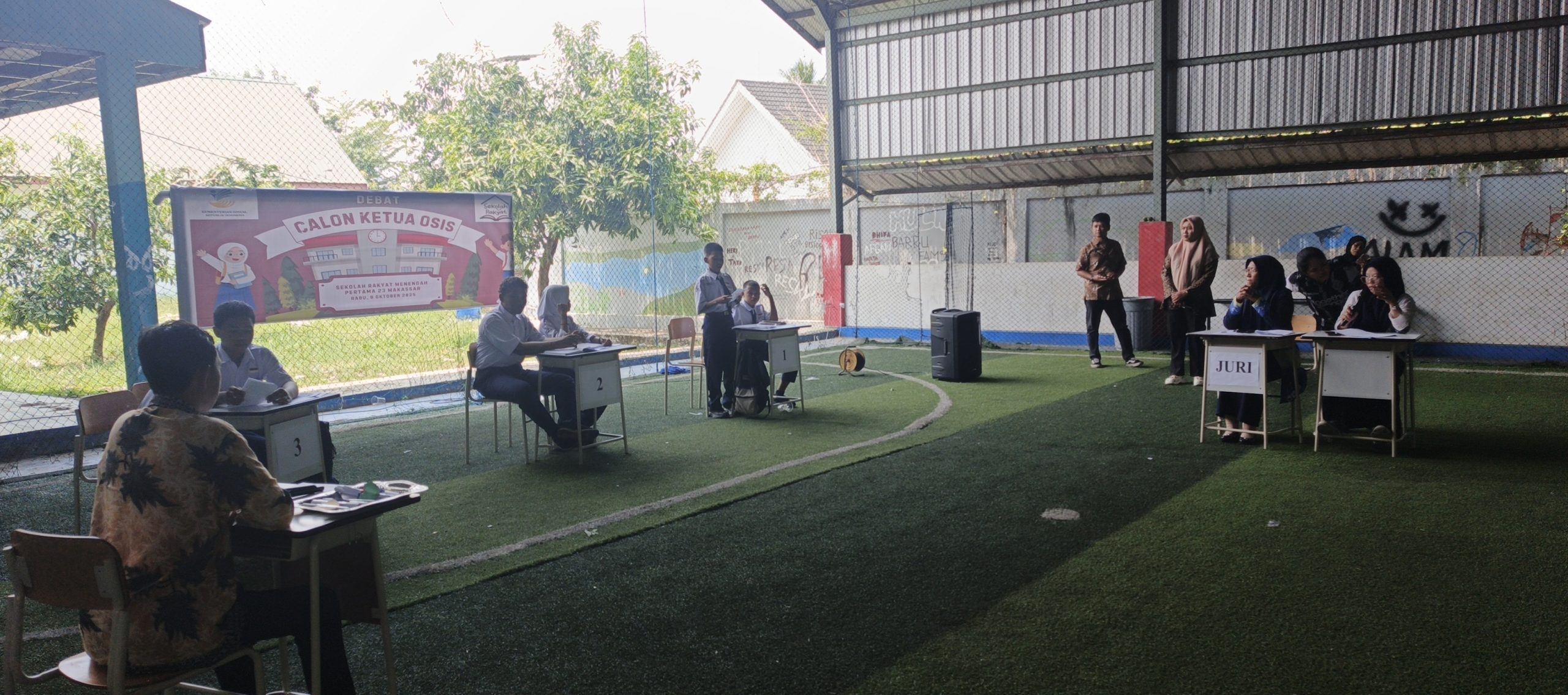 Setelah sesi pemaparan visi dan misi, kegiatan dilanjutkan dengan debat antar calon. Debat berlangsung seru dan interaktif, dengan berbagai pertanyaan tajam yang diajukan baik oleh moderator maupun dari perwakilan siswa. Seluruh peserta debat menunjukkan sikap kritis, sportif, dan penuh semangat dalam menyampaikan pandangan mereka.