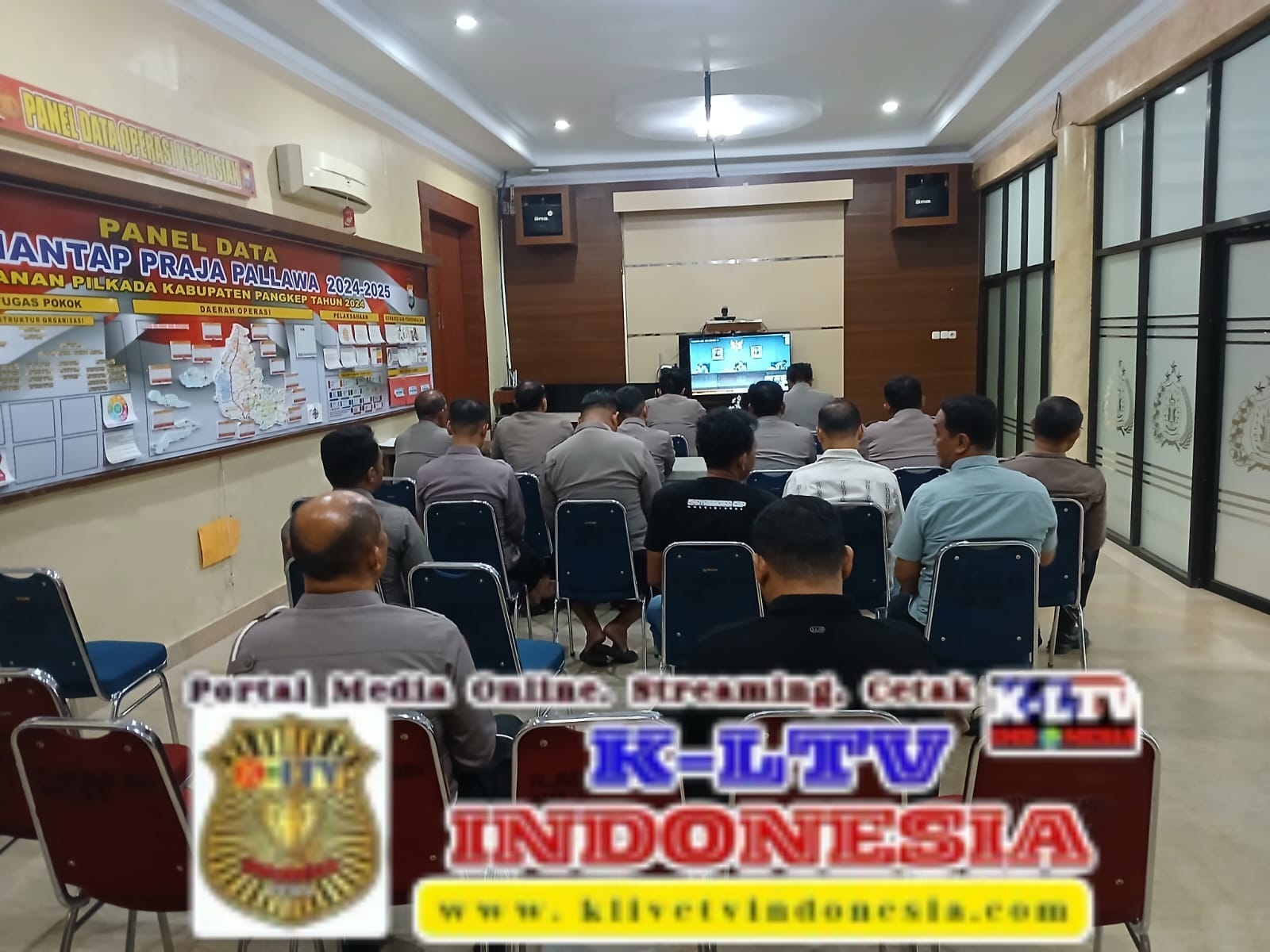 Pangkep – Kapolres Pangkep AKBP Muhammad Husni Ramli, S.I.K., M.H., M.Tr.Opsla. bersama Pejabat Utama (PJU) Polres Pangkep mengikuti kegiatan Video Conference (Vicon) pimpinan Kapolri dalam rangka Analisis dan Evaluasi (Anev) Situasi Keamanan dan Ketertiban Masyarakat (Sitkamtibmas) terkini, bertempat di Aula Andi Mappe Polres Pangkep, Selasa (14/10/2025).
