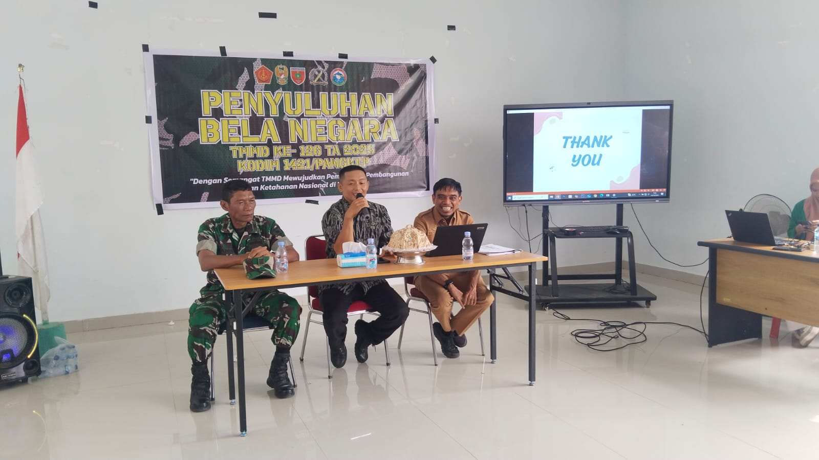 klivetvindonesia.com,Pangkep – Dalam rangka meningkatkan kesadaran dan pemahaman masyarakat tentang pentingnya Bela Negara, Kodim 1421/Pangkep menggelar penyuluhan Bela Negara dalam rangkaian kegiatan TMMD Ke-126. Kegiatan ini dilaksanakan di SMK 5 Negri Pangkep, Desa Mandalle, Kec. Mandalle, Kab. Pangkep. (14/10/25).