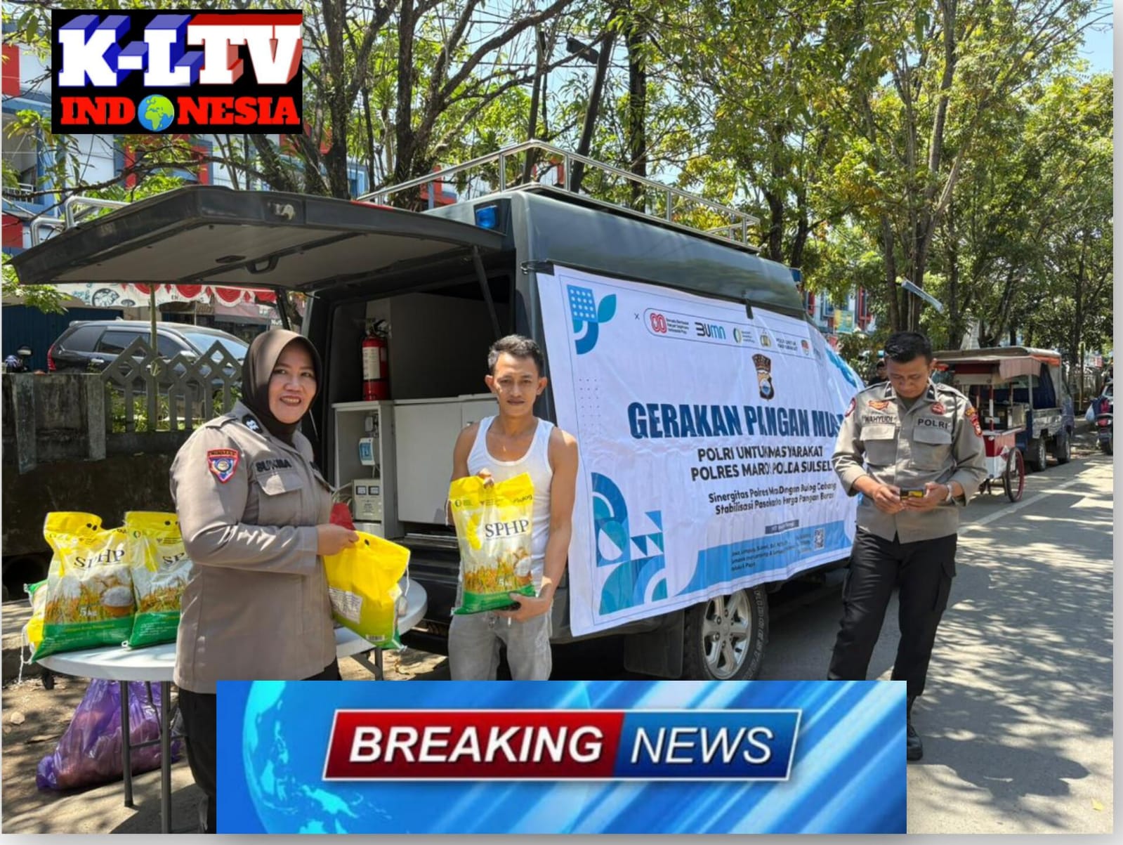 KLTV.indonesia.com.Maros, Sulsel- Polres Maros Polda Sulsel menghadirkan gerakan pangan murah (GPM) untuk menjaga stabilitas harga pangan. Satu ton beras yang dijual diharga Rp 58.000 per kemasan 5 kilogram habis diserbu masyarakat.