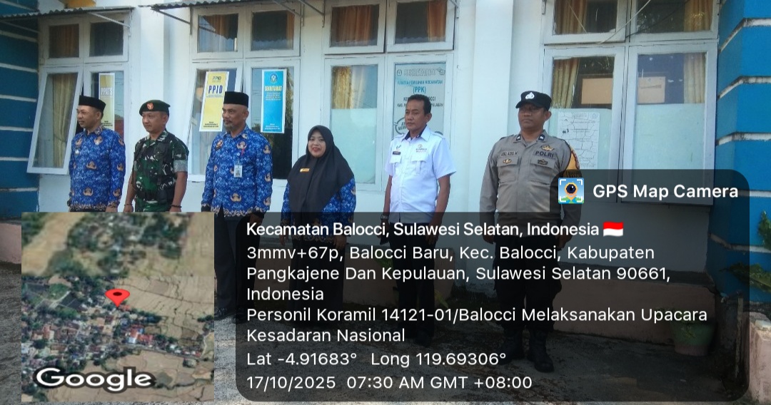 Upacara Hari Kesadaran Nasional ini dihadiri oleh unsur TNI, Polri, ASN, tenaga kesehatan, para lurah, kepala sekolah, serta pegawai lintas instansi di wilayah Kecamatan Balocci. Kegiatan tersebut bertujuan untuk menumbuhkan semangat nasionalisme, meningkatkan kedisiplinan, serta memperkuat rasa tanggung jawab sebagai aparatur negara dalam memberikan pelayanan terbaik kepada masyarakat.
