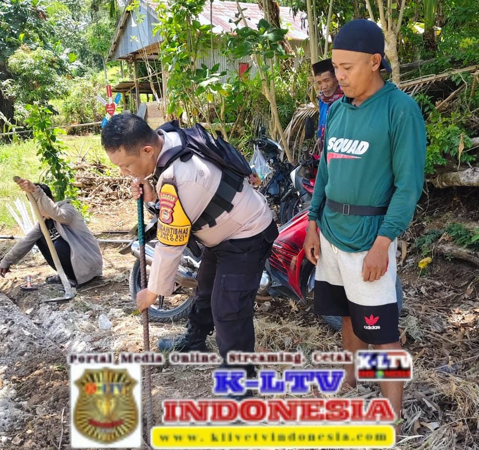 klivetvindonesia.com,Pangkep – Wujud nyata kedekatan dan kepedulian Polri terhadap masyarakat kembali ditunjukkan oleh Bhabinkamtibmas Desa Tompo Bulu, Polsek Balocci, Polres Pangkep, Aipda Abd. Azis. Ia terlihat turut membantu warga dalam kegiatan gotong royong menggali tanah untuk pemasangan pipa air di Kampung Benteng, Desa Tompo Bulu, Kecamatan Balocci, Kabupaten Pangkep.