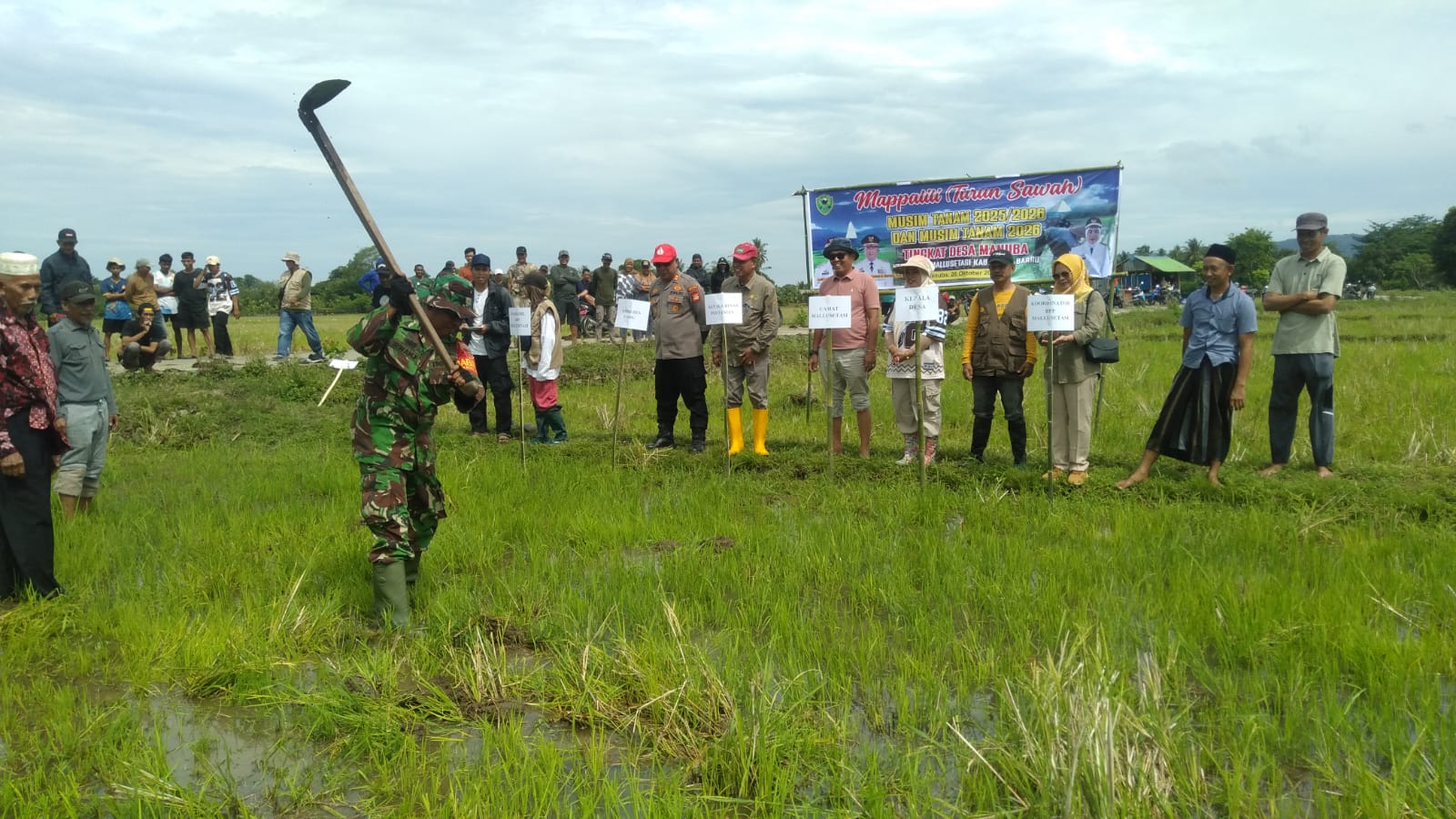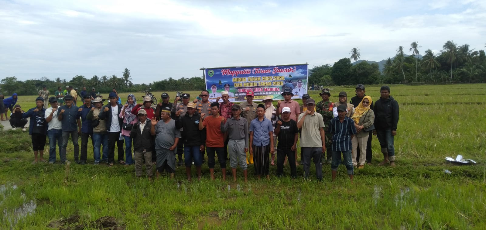 Kegiatan ini turut dihadiri oleh Kepala Dinas Pertanian, Camat Mallusetasi, Kepala KUA, Kepala Desa Manuba, Kepala BPP Mallusetasi, PPL Manuba, para pengurus Gapoktan, ketua dan anggota kelompok tani, serta tokoh masyarakat, tokoh agama, tokoh adat, dan warga Desa Manuba.