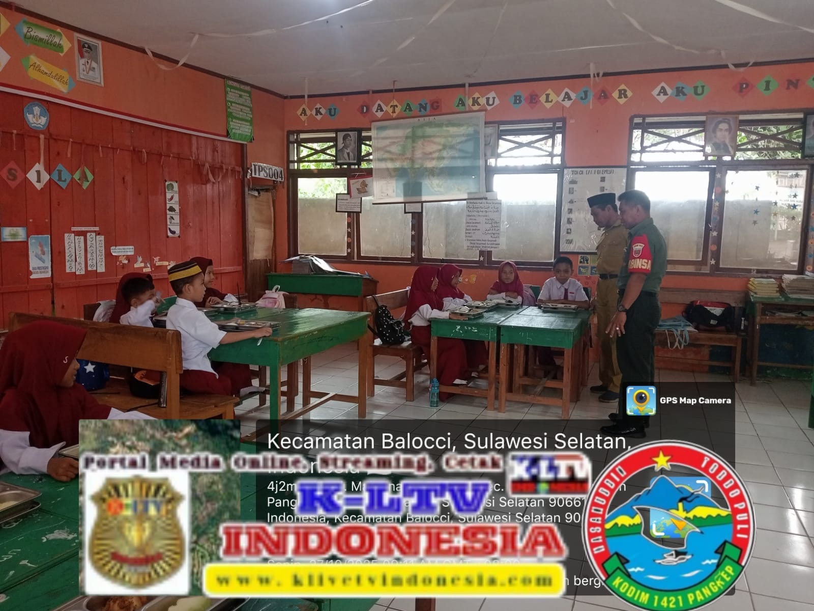 klivetvindonesia.com,Pangkep, Senin (27/10/2025) — Dalam rangka mendukung program pemerintah terkait peningkatan gizi anak sekolah, Babinsa Kelurahan Tonasa, Kecamatan Balocci, Kabupaten Pangkep, Serda Suhardi melaksanakan kegiatan pendampingan program Makan Bergizi Gratis (MBG) di SDN 02 Majennang Tonasa 1, Senin pagi pukul 08.00 Wita.