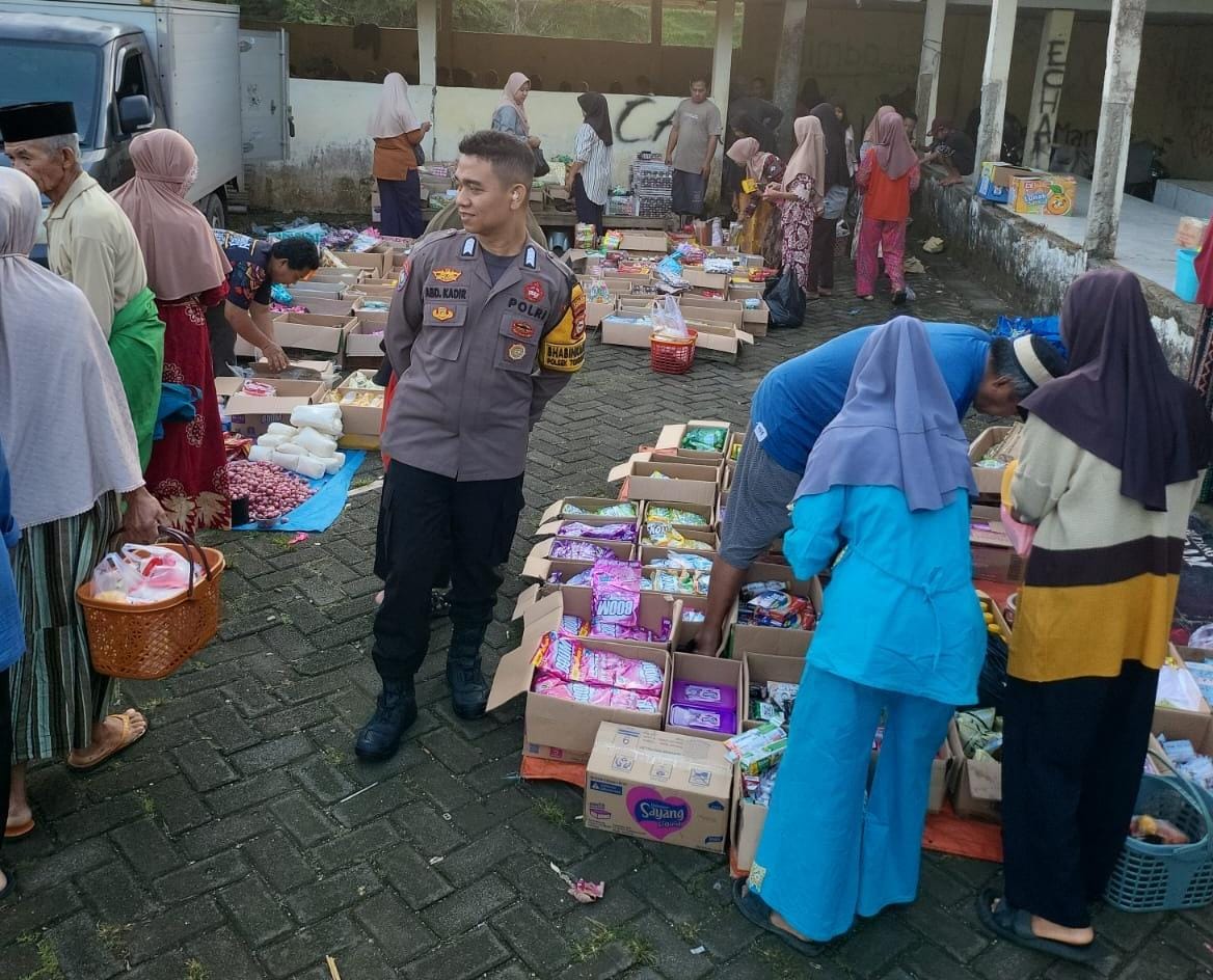 Bhabinkamtibmas Desa Bulu Tellue Polsek Tondong Tallasa Bripka Abd.Kadir,S.Psi.,M.M. melaksanakan pengamanan kegiatan di Pasar Tradisional Langkaca Desa Bulu Tellue guna mencegah terjadinya gangguan Kamtibmas dan memastikan aktivitas transaksi jual beli antara pedagang dan warga pengunjung pasar berjalan aman,tertib dan lancar.