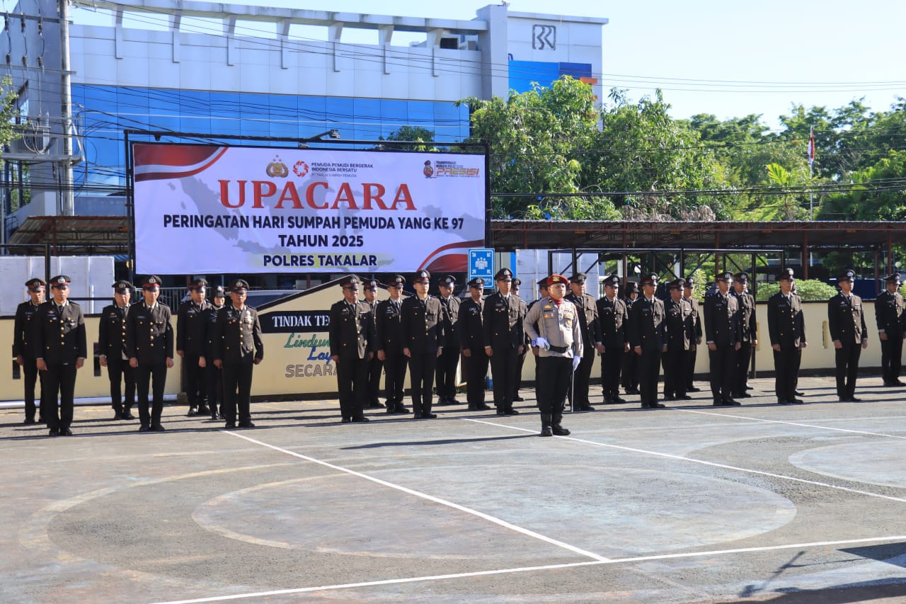 Takalar – Lapangan Apel Polres Takalar menjadi saksi khidmatnya pelaksanaan Upacara Bendera Peringatan Hari Sumpah Pemuda ke-97 Tahun 2025, pada Selasa (28/10/2025) pukul 07.30 Wita. Upacara tahun ini mengusung tema “Pemuda Pemudi Bergerak, Indonesia Bersatu”, sebagai refleksi semangat kebangsaan dan persatuan generasi muda di tengah tantangan zaman.