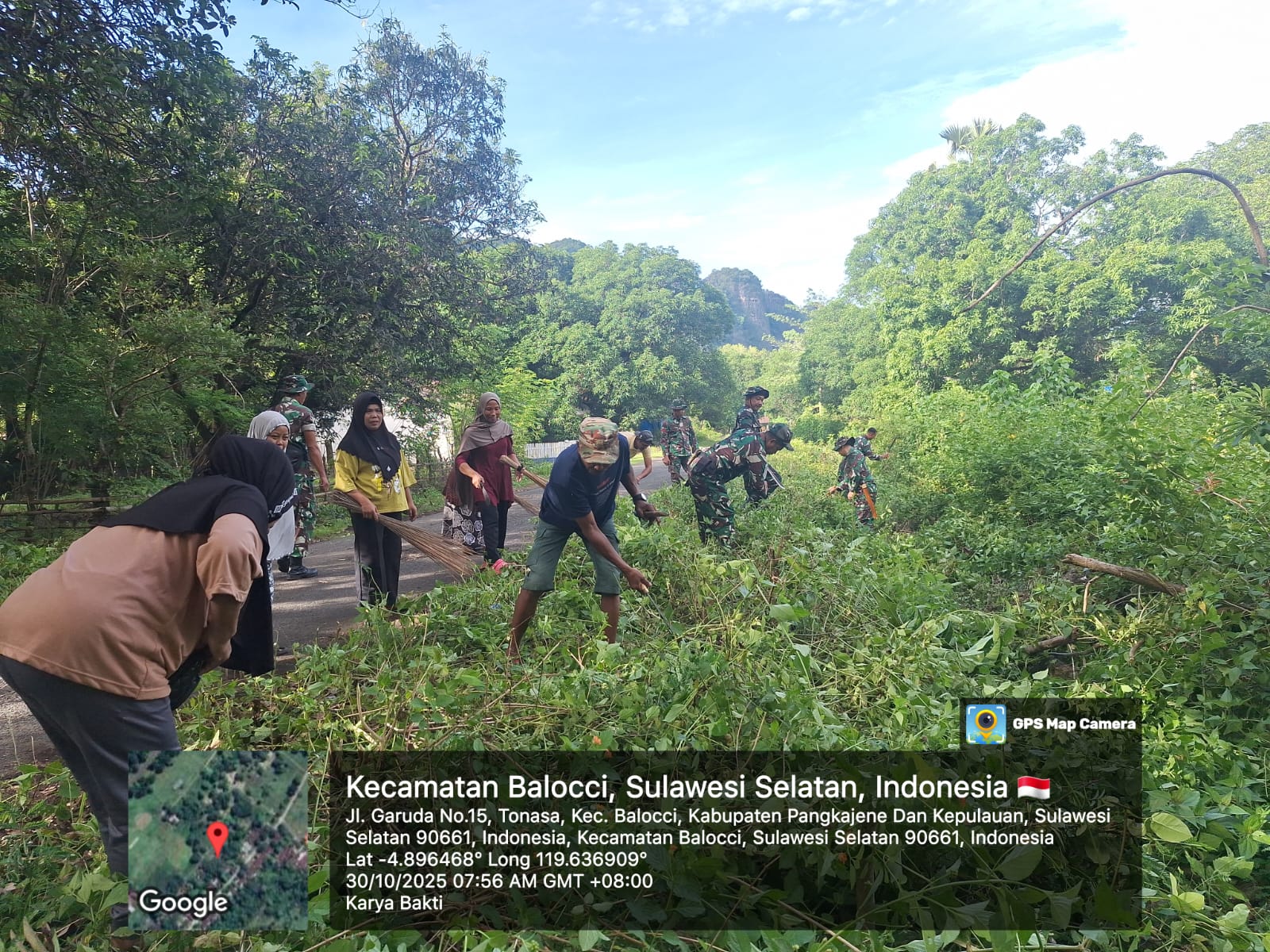 klivetvindonesia.com,Pangkep, 30 Oktober 2025 — Semangat gotong royong kembali terlihat di Kelurahan Tonasa, Kecamatan Balocci, Kabupaten Pangkep. Pada Kamis pagi pukul 07.00 Wita, personel Koramil 1421-01/Balocci yang dipimpin langsung oleh Pelda Suparman (Batuud Koramil 1421-01/Balocci) melaksanakan kegiatan Karya Bakti pembersihan dan pengerukan parit di Kampung Bulu Tabampang, Jl. Pendidikan Tonasa 1, RT 02/RW 03.