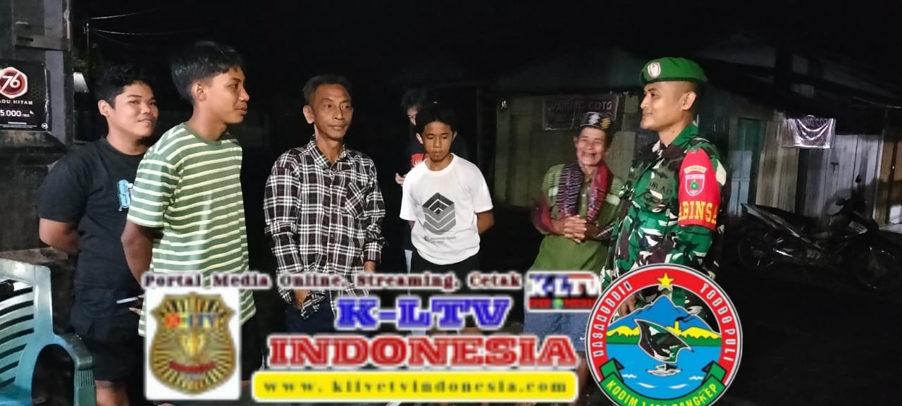 Pangkep, Jumat malam (31 Oktober 2025) – Dalam rangka menjaga situasi keamanan dan ketertiban masyarakat di wilayah binaan, Bintara Pembina Desa (Babinsa) Desa Tondongkura, Serda Anwar Tiwi melaksanakan kegiatan patroli keamanan kampung pada Jumat malam pukul 19.50 Wita di wilayah Kecamatan Tondong Tallasa, Kabupaten Pangkep.
