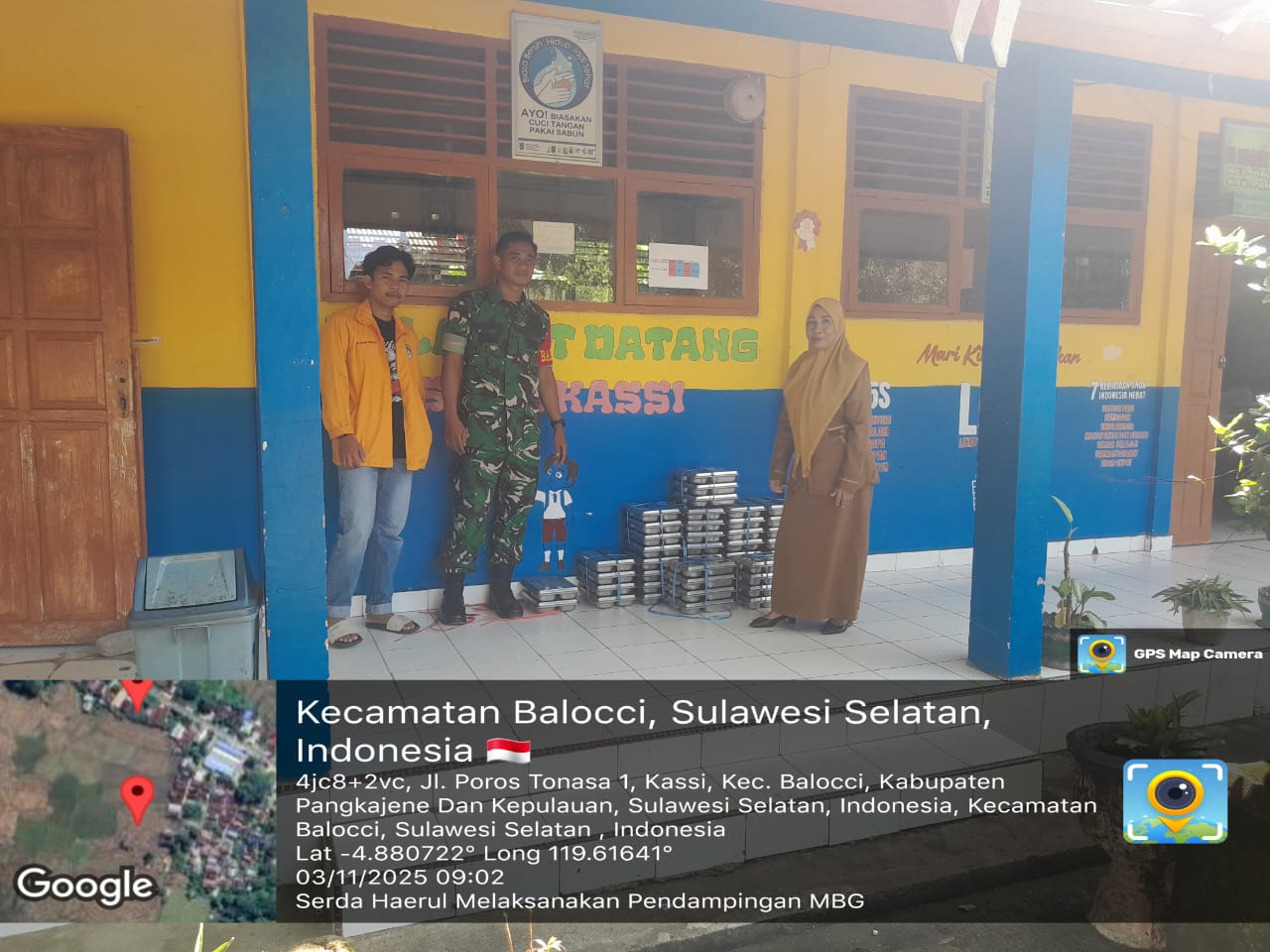 klivetvindonesia.com,Balocci – Pada hari Senin, tanggal 03 November 2025, pukul 09.00 Wita, Babinsa Kelurahan Kassi, Serda Haerul, melaksanakan kegiatan pendampingan Program Makan Bergizi bagi siswa-siswi di SDN 1 Kassi, Kelurahan Kassi, Kecamatan Balocci, Kabupaten Pangkep.