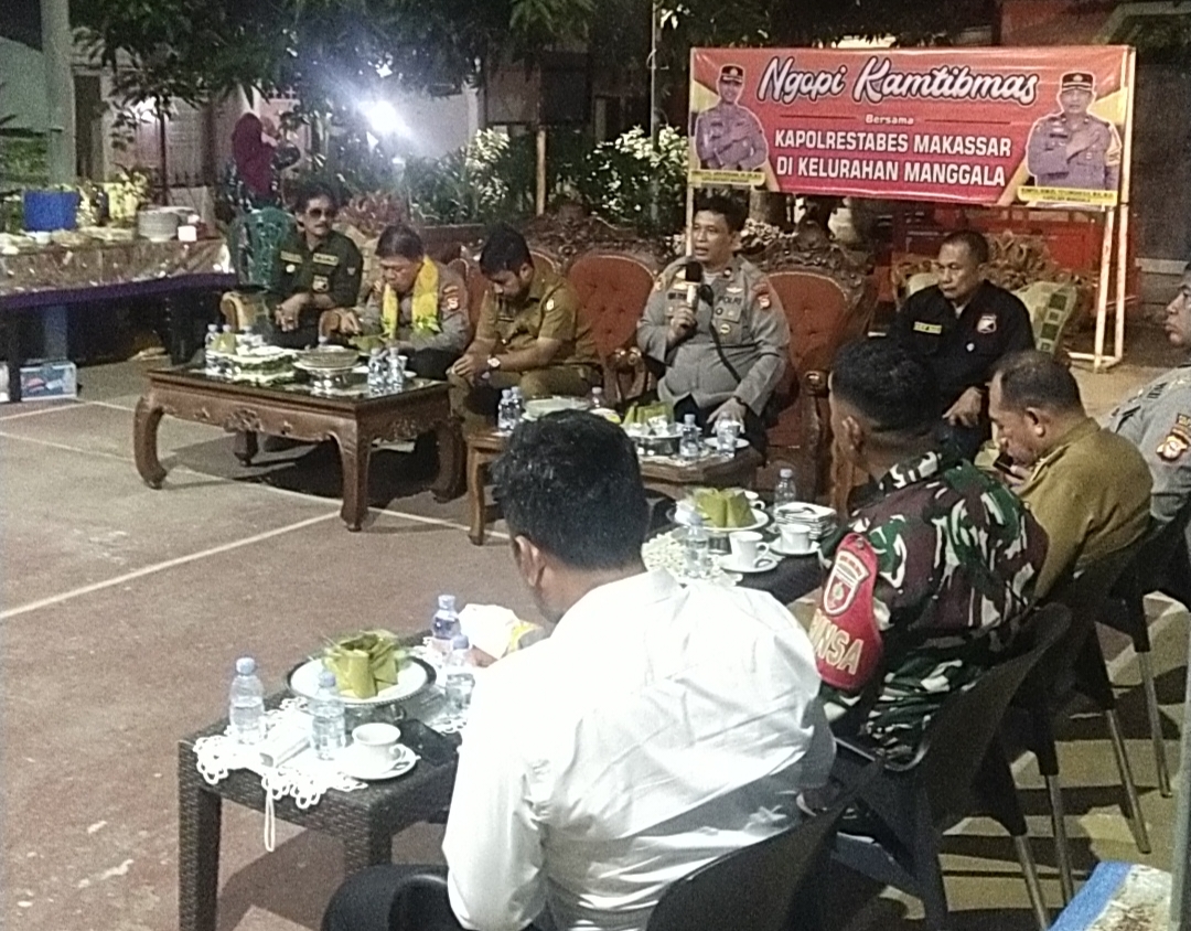 Klivetvindonesia.com-Makassar — Dalam rangka mempererat sinergi antara aparat keamanan dan masyarakat, Polrestabes Makassar menggelar kegiatan “Ngopi Kamtibmas” bersama unsur Tripika Kecamatan Manggala, tokoh masyarakat, tokoh agama, tokoh pemuda, serta warga Kelurahan Manggala. Kegiatan yang berlangsung di Jl. Biring Romang Dalam, Perumnas Antang, pada Senin malam (3/11/2025) ini dihadiri sekitar 150 peserta dari berbagai elemen masyarakat.