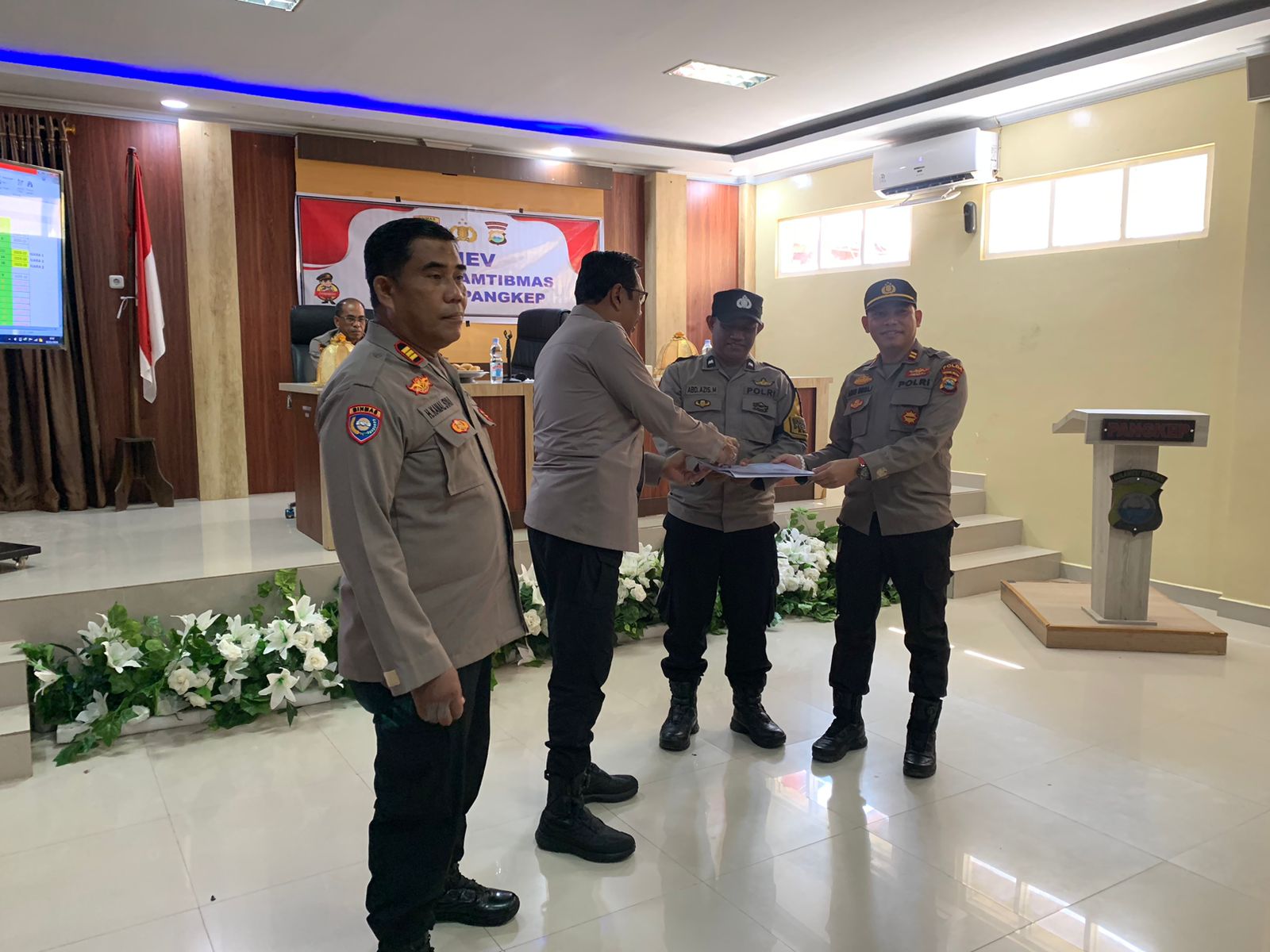 klivetvindonesia.com,Pangkep, Senin 3 November 2025 — Dalam rangka pelaksanaan Analisa dan Evaluasi (Anev) bulanan Bhabinkamtibmas jajaran Polres Pangkep, Wakapolres Pangkep Kompol Sugeng Suprijanto memberikan penghargaan (reward) kepada Aipda Abd. Azis Bhabinkamtibmas Desa Tompo Bulu, Polsek Balocci.