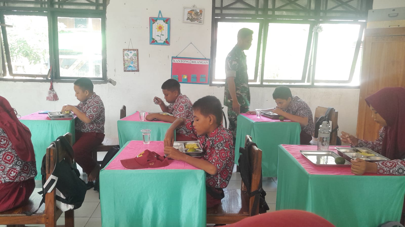 Balocci, Pangkep — Dalam rangka mendukung program nasional Makan Bergizi Gratis (MBG) yang digagas oleh Presiden Republik Indonesia, Bapak Prabowo Subianto, Babinsa Kelurahan Kassi, Serda Haerul, melaksanakan kegiatan pendampingan pembagian makan bergizi bagi siswa-siswi di SDN 28 Jennae, Kelurahan Kassi, Kecamatan Balocci, Kabupaten Pangkep. Kegiatan tersebut berlangsung pada hari Kamis, 06 November 2025, mulai pukul 09.10 WITA hingga selesai dengan situasi aman dan tertib. Dalam kegiatan tersebut, Serda Haerul turut memantau secara langsung proses penyaluran makanan bergizi kepada para siswa yang berjumlah 59 orang.