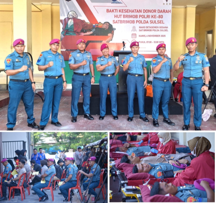 Kegiatan donor darah ini diselenggarakan oleh Sat Brimob Polda Sulsel sebagai bentuk kepedulian sosial dan sinergitas antara TNI–Polri dalam membantu sesama melalui aksi kemanusiaan.