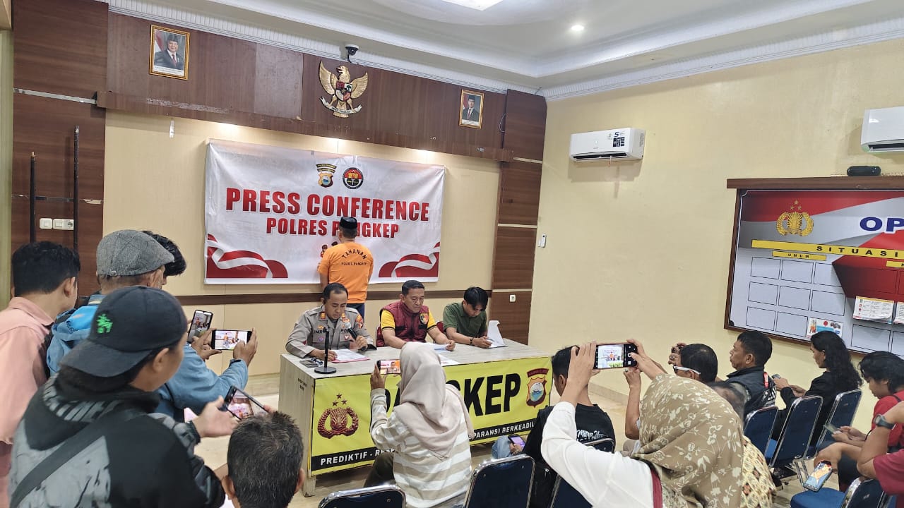 Pangkep – Kepolisian Resor (Polres) Pangkep kembali menunjukkan komitmennya dalam memberantas kejahatan di dunia maya dengan menggelar Press Release pengungkapan kasus tindak pidana pornografi dan penyebaran konten bermuatan melanggar kesusilaan melalui media elektronik, Jumat (14/11/2025). Kegiatan yang berlangsung di Aula Andi Mappe Polres Pangkep ini dipimpin oleh Kasi Humas Polres Pangkep AKP Imran, S.H., didampingi KBO Sat Reskrim Polres Pangkep Ipda Abd Kadir Husen, serta diikuti Penyidik Pembantu Bripda Awaluddin.
