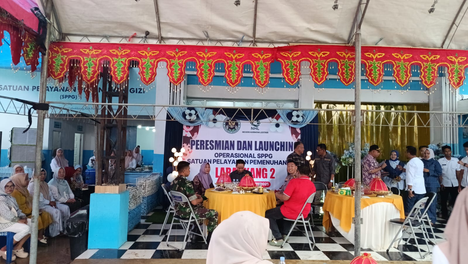 Acara launching yang dimulai pukul 09.26 Wita ini dihadiri oleh berbagai tokoh penting, di antaranya Plt. Asisten I Pemda Kab. Pangkep Drs. Asrul Asikin, Kasiwas Polres Pangkep IPTU Makmur, SH, perwakilan Dandim 1421 Pangkep Serma Rumpa, perwakilan Kadis Pendidikan Kab. Pangkep Bpk. Hasbulla, Dirut Perumda Mappatuo Kab. Pangkep Ir. H. Arfan Tualle, perwakilan Kapolsek Labakkang Ipda Abdul Haris, Camat Labakkang Bahri S.E,. M.M, Kepala Kelurahan Labakkang, Ps. Kanit Intelkam Polsek Labakkang Aiptu Asri Wistam, Kepala SPPG Labakkang 2 Muammar, Ahli Gizi SPPG Labakkang 2 Aulia Wita Bahri, A. Md. Gz, Mitra SPPG Labakkang 2 Yayasan Negeri Harmoni Lestari Nur Asni dan Anwar Bro, para Kepala Sekolah penerima MBG wilayah Kec. Labakkang, serta Tokoh Masyarakat Kab. Pangkep H. Syamsul A. Hamid.
