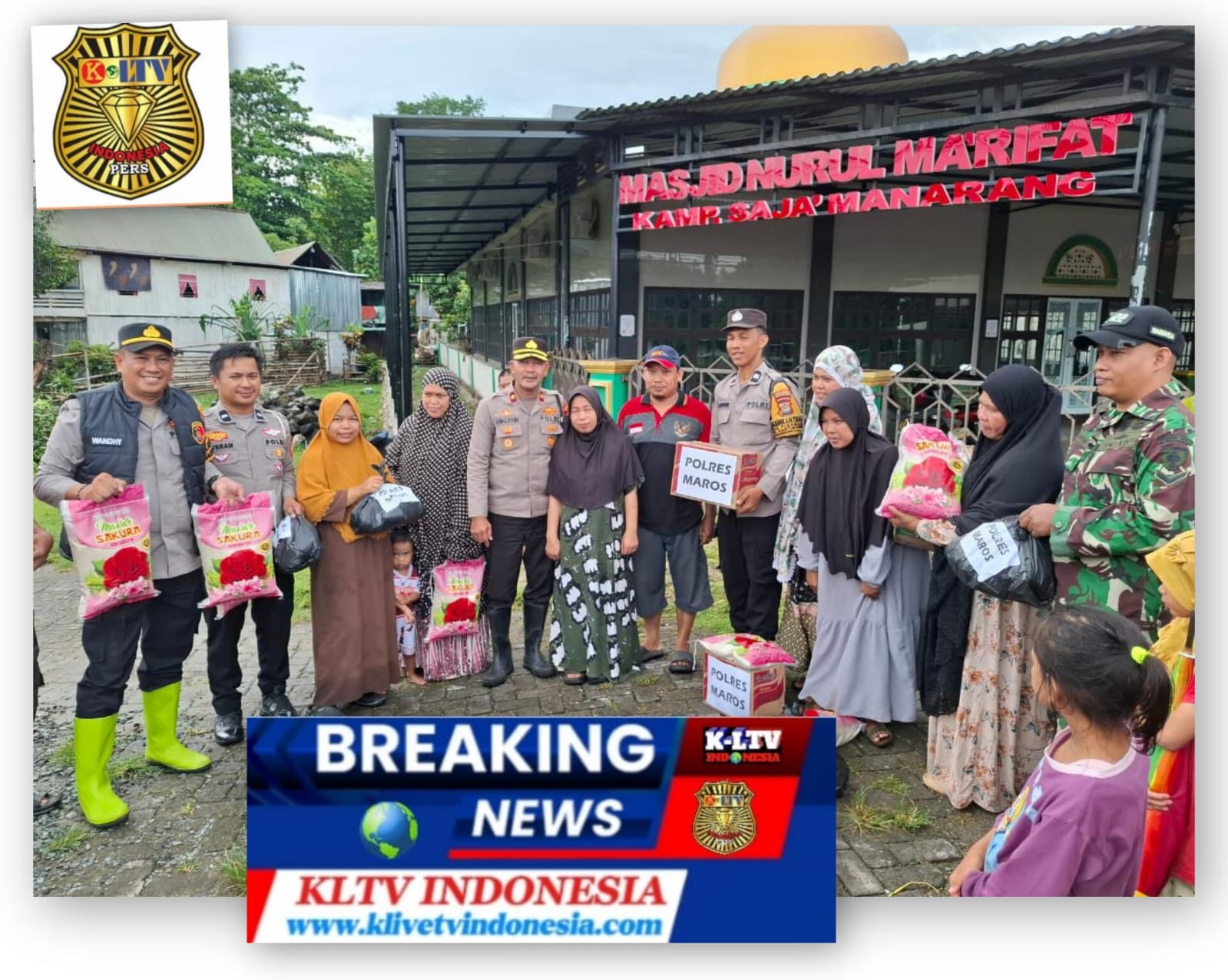Wakapolres Maros, Kompol Ahmad Rosma, S.H., turun langsung memimpin penyaluran bantuan berupa paket sembako kepada warga yang menjadi korban. Bantuan tersebut diberikan sebagai bentuk empati dan kehadiran Polri di tengah masyarakat saat terjadi musibah.