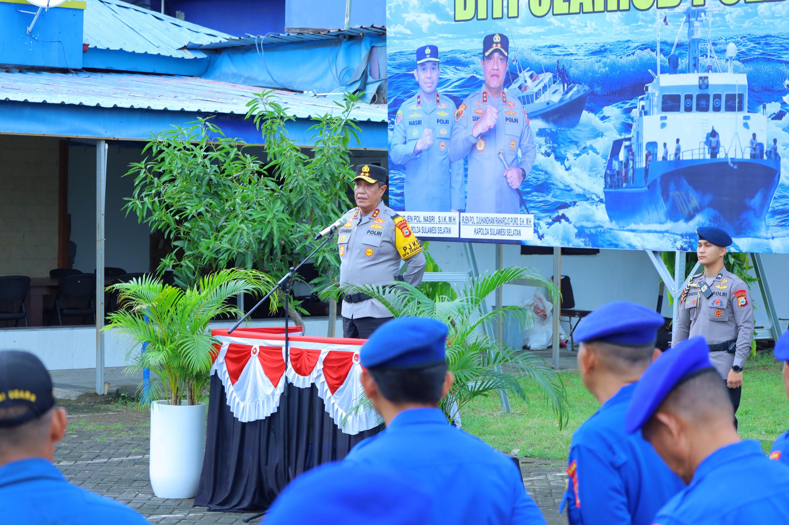 –klivetvindonesia.com– Kapolda Sulawesi Selatan Irjen Pol. Djuhandhani Rahardjo Puro, S.H., M.H., memimpin langsung Apel Bersama Personel Direktorat Polisi Perairan dan Udara (Ditpolairud) Polda Sulsel yang berlangsung di Mako Ditpolairud Polda Sulsel, Rabu (19/11/2025). Apel tersebut diikuti oleh seluruh personel Ditpolairud, dengan Komandan Apel Dirpolairud Polda Sulsel Kombes Pol. Dr. Pitoyo Agung Yuwono, S.Ik., M.Hum.