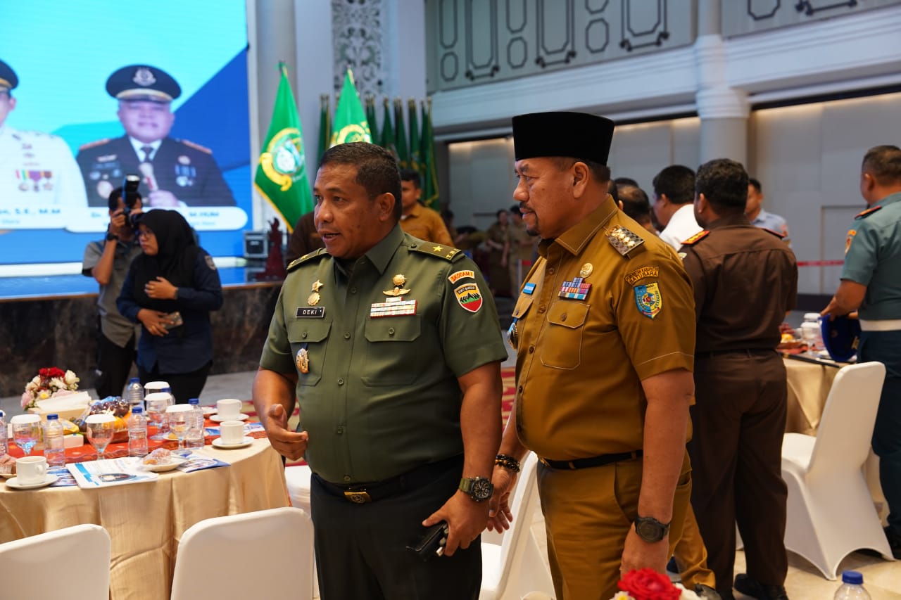 MEDAN- KLTV INDONESIA–klivetvindonesia.com- Kasdam I/Bukit Barisan Brigjen TNI Deki Santoso Pattinaya bersama Forkopimda Sumut menghadiri penandatanganan MOU/PKS antara Kejaksaan Tinggi Sumut dan Pemprov Sumut terkait pelaksanaan pidana kerja sosial bagi pelaku tindak pidana. Kegiatan berlangsung di Aula Raja Inal Siregar, Kantor Gubernur Sumut, Medan, Selasa (18/11/2025).
