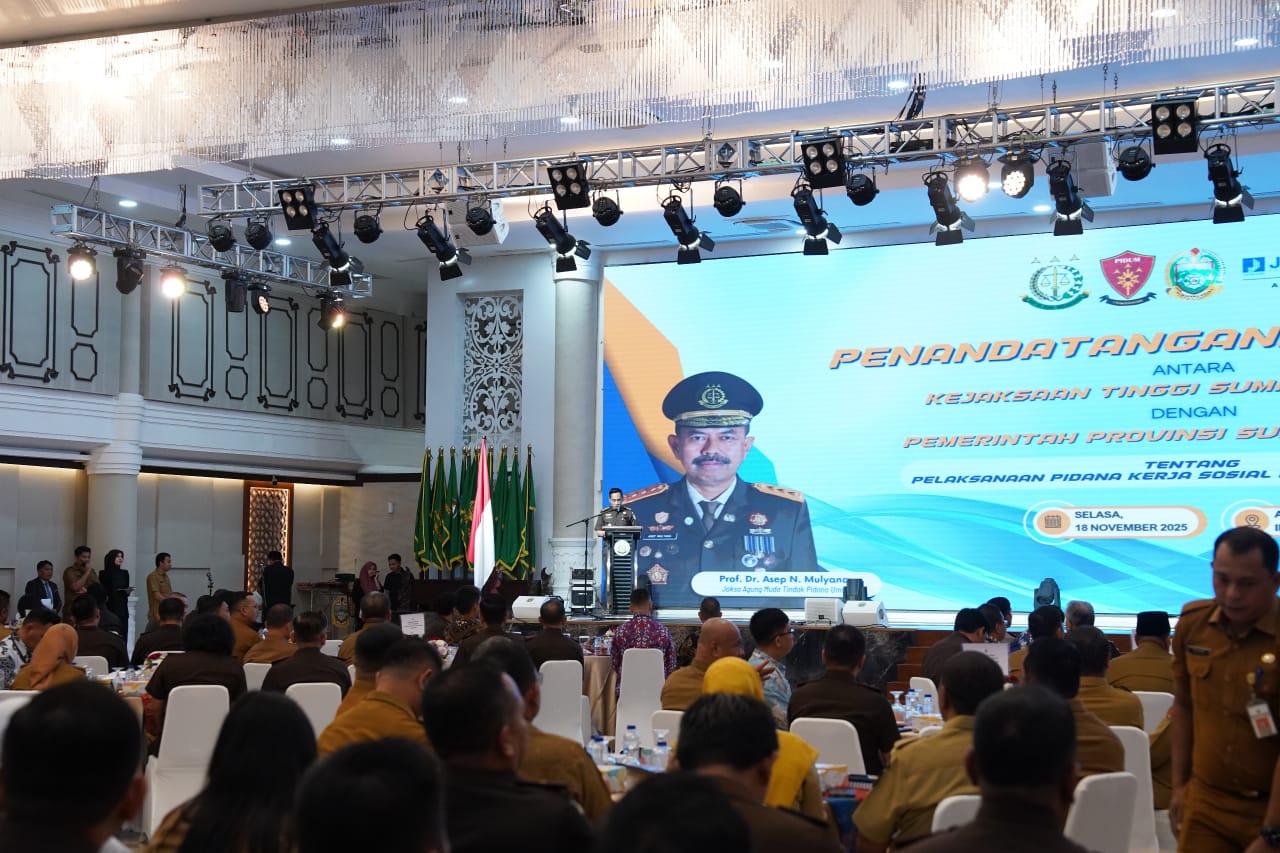 Kajati Sumut Dr. Harli Siregar dalam sambutannya menyebut kerja sama tersebut sebagai langkah strategis membangun sinergi antara pemerintah daerah dan kejaksaan. Ia menegaskan pidana kerja sosial merupakan amanat UU No. 1 Tahun 2023 tentang KUHP yang memperkuat pendekatan keadilan restoratif sebagai arah baru sistem pemidanaan nasional.
