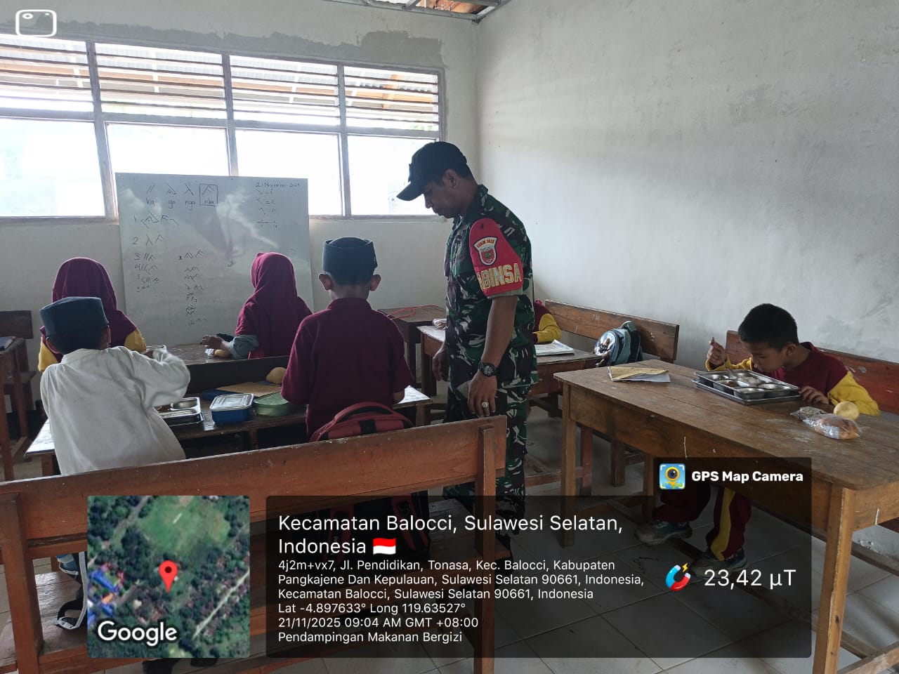 Pangkep, Sulawesi Selatan – Komitmen TNI dalam mendukung program pemerintah terus diwujudkan melalui pendampingan rutin Babinsa di berbagai wilayah. Pada Selasa, 18 November 2025, pukul 08.40 WITA, Serda Suhardi selaku Babinsa Kelurahan Tonasa melaksanakan kegiatan pendampingan Program Makan Bergizi Gratis (MBG) bagi siswa-siswi di SDN 29 Tonasa 1, Kecamatan Balocci, Kabupaten Pangkep.