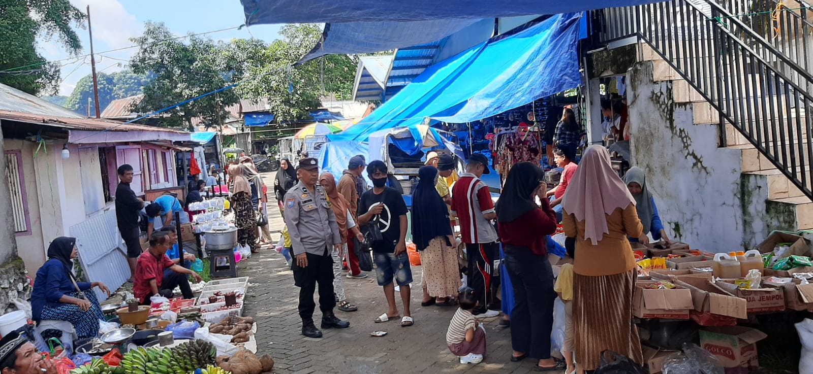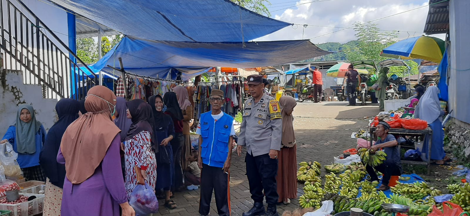 Bhabinkamtibmas Polsek balocci Pantau Aktifitas warga di Pasar Rakyat Kassi.