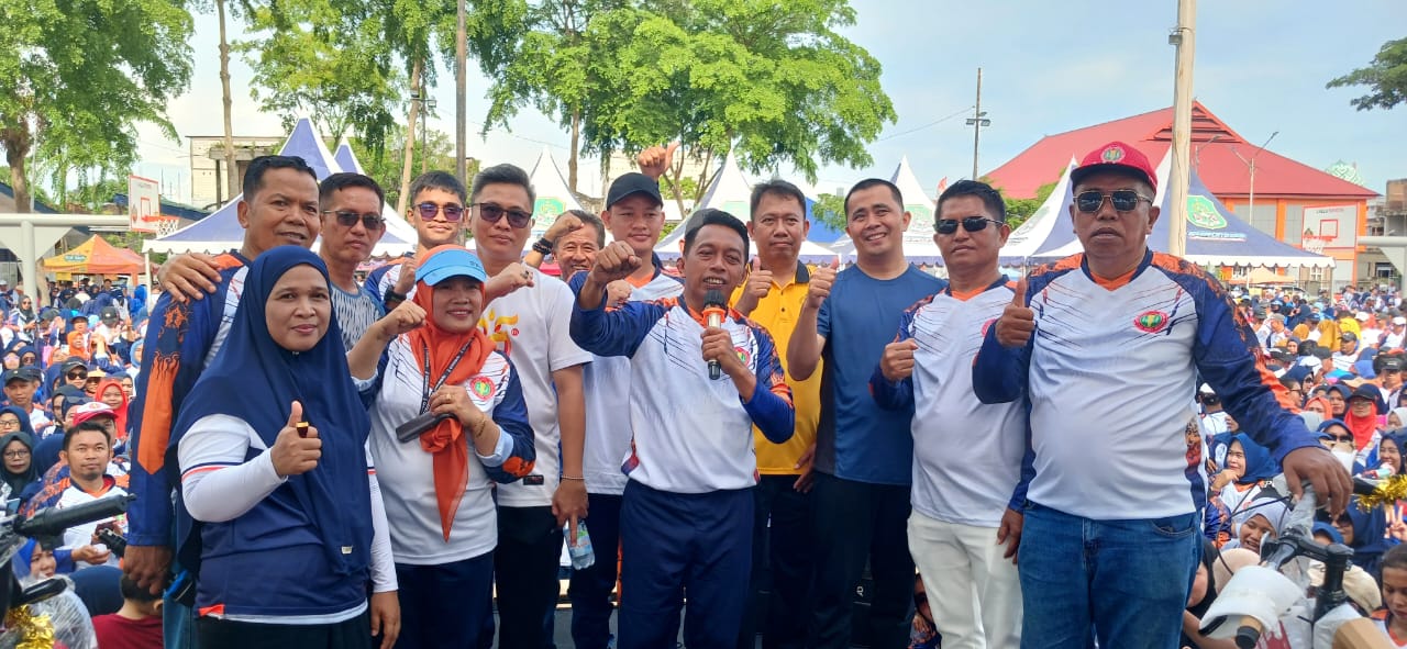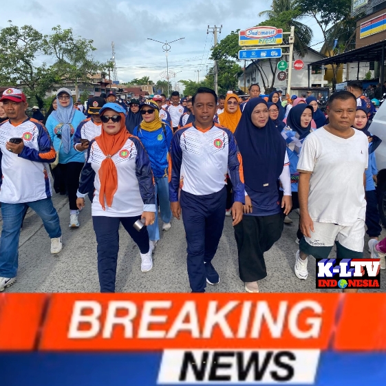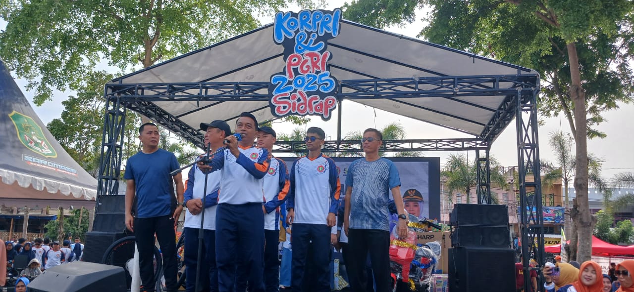 –klivetvindonesia.com— Bupati Sidrap, Syaharuddin Alrif, bersama Wakil Bupati Nurkanaah membaur dengan ribuan peserta jalan santai dalam rangka peringatan HUT PGRI, Hari Guru Nasional, dan Hari Korps Pegawai Republik Indonesia (Korpri), Ahad , 23 November 2025