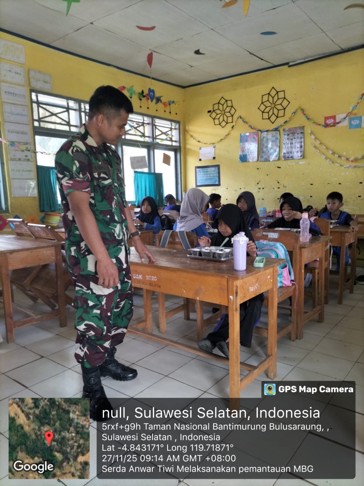 klivetvindonesia.com,Pangkep, Sulawesi Selatan – Program nasional Makan Bergizi Gratis (MBG) kembali menunjukkan keseriusannya dalam memastikan anak-anak sekolah mendapatkan asupan gizi yang layak. Pada Kamis, 27 November 2025, Babinsa Desa Tondongkura, Serda Anwar Tiwi, melakukan pemantauan langsung terhadap proses penyiapan makanan di Dapur Sehat MBG Yayasan Darul Barokah, yang berlokasi di Jalan Batu Bara, Dusun Parang Lombasa, Desa Bantimurung, Kecamatan Tondong Tallasa, Kabupaten Pangkep.