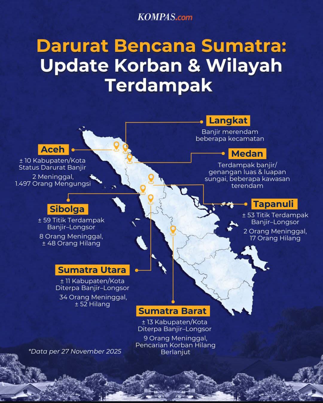 Informasi terbaru menyebutkan jembatan Fransiskus di Tukka putus akibat material longsor, membuat jalur utama ke Sibuluan Baru tidak dapat dilewati. Sementara itu, banjir setinggi lutut orang dewasa masih merendam sejumlah titik, termasuk Sibuluan Nauli dan Kelurahan Pondok Batu. Meski demikian, proses pembersihan jalan sudah mulai dilakukan menggunakan alat berat.