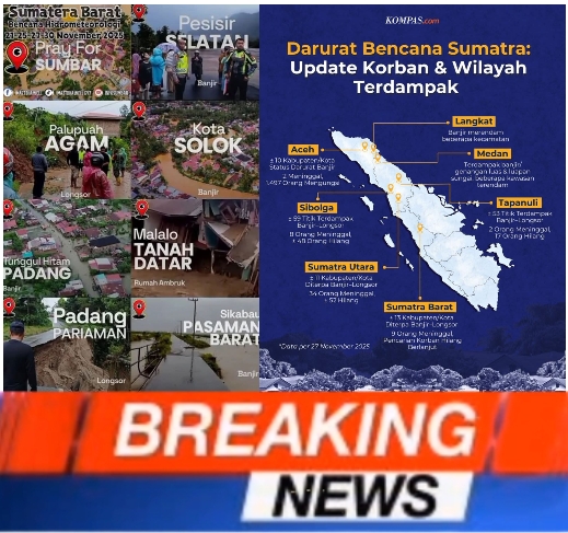 klivetvindonesia.com-— Rabu, 26 November 2025 | Update 13.00 WIBBencana banjir dan tanah longsor yang melanda wilayah Sibolga dan Tapanuli Tengah sejak Selasa malam meninggalkan duka mendalam. Dalam laporan resmi Basarnas , tercatat 9 korban meninggal, 4 orang masih dalam pencarian, serta sejumlah warga mengalami luka-luka. Petugas menyebutkan bahwa pendataan masih berlangsung dan jumlah korban berpotensi bertambah.