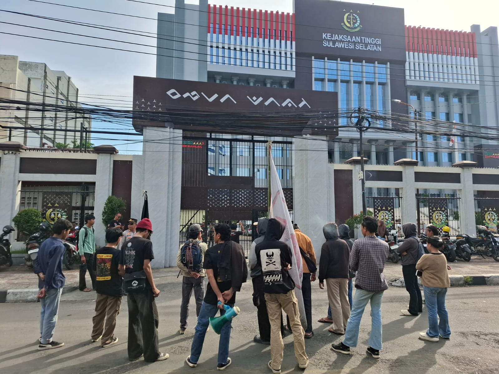 –klivetvindonesia.com– Puluhan Massa Aliansi Pemerhati Hukum Sul-Sel yang merupakan gabungan dari, Kesatuan Aktivis Mahasiswa Rakyat Indonesia (KAMRI), dan Koalisi Perjuangan Pemuda Mahasiswa ( KPPM), melakukan Aksi Unjuk Rasa di depan Kejati Sul-Sel terkait Kasus Korupsi Dana Hibah Pilkada 2024, jl. Urip Sumoharjo, Jumat (28/11/2025).