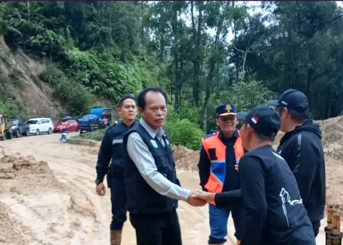 Pada peninjauan lokasi longsor di kawasan Puncak KM 18, jalan penghubung antara Kota Sungai Penuh dan Provinsi Sumatra Barat, Wawako melihat langsung kondisi material longsor yang menutup sebagian badan jalan.