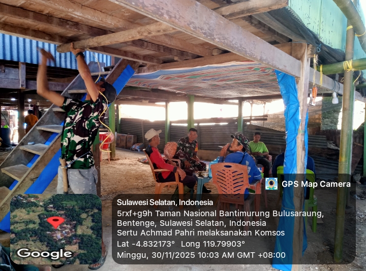 klivetvindonesia.com,Pangkep Minggu, 30 November 2025, sekitar pukul 10.00 Wita, Babinsa Desa Lanne, Sertu Achmad Pahri, melaksanakan kegiatan Komunikasi Sosial (Komsos) bersama warga RT 05, RK 06, Dusun Mario Lolo, Desa Lanne, Kecamatan Tondong Tallasa, Kabupaten Pangkep. Kegiatan ini merupakan bagian dari upaya TNI melalui aparat teritorial untuk mempererat hubungan dengan masyarakat serta menyampaikan imbauan penting terkait keamanan, kesehatan, dan ketertiban lingkungan.