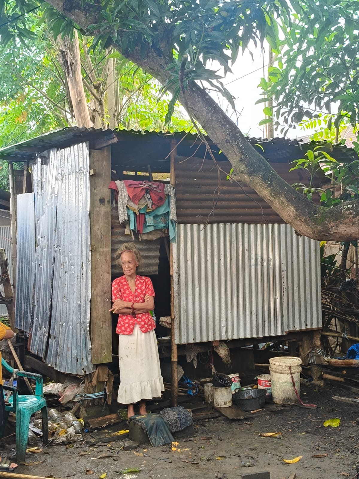 Kondisi tempat tinggal Nenek Sitti Dg Puji (56) sangat memprihatinkan. Ia menempati sebuah rumah panggung darurat berukuran sekitar 3 x 2 meter, yang dibangun oleh warga menggunakan material bekas karena beliau tidak memiliki tempat tinggal layak.
