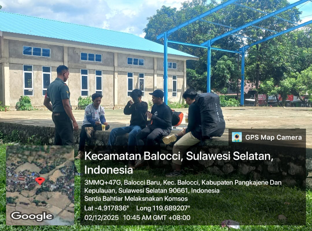 klivetvindonesia.com,Pangkep balocci baleangin Dalam rangka mempererat komunikasi dengan masyarakat serta memastikan kondisi keamanan dan ketertiban di wilayah binaan tetap terpelihara, Babinsa Kelurahan Balleangin, Serda Bahtiar, melaksanakan kegiatan Komunikasi Sosial (Komsos) pada Selasa, 02 Desember 2025, pukul 10.00 Wita di Kampung Tompo Balang, Kelurahan Balleangin, Kecamatan Balocci, Kabupaten Pangkep.