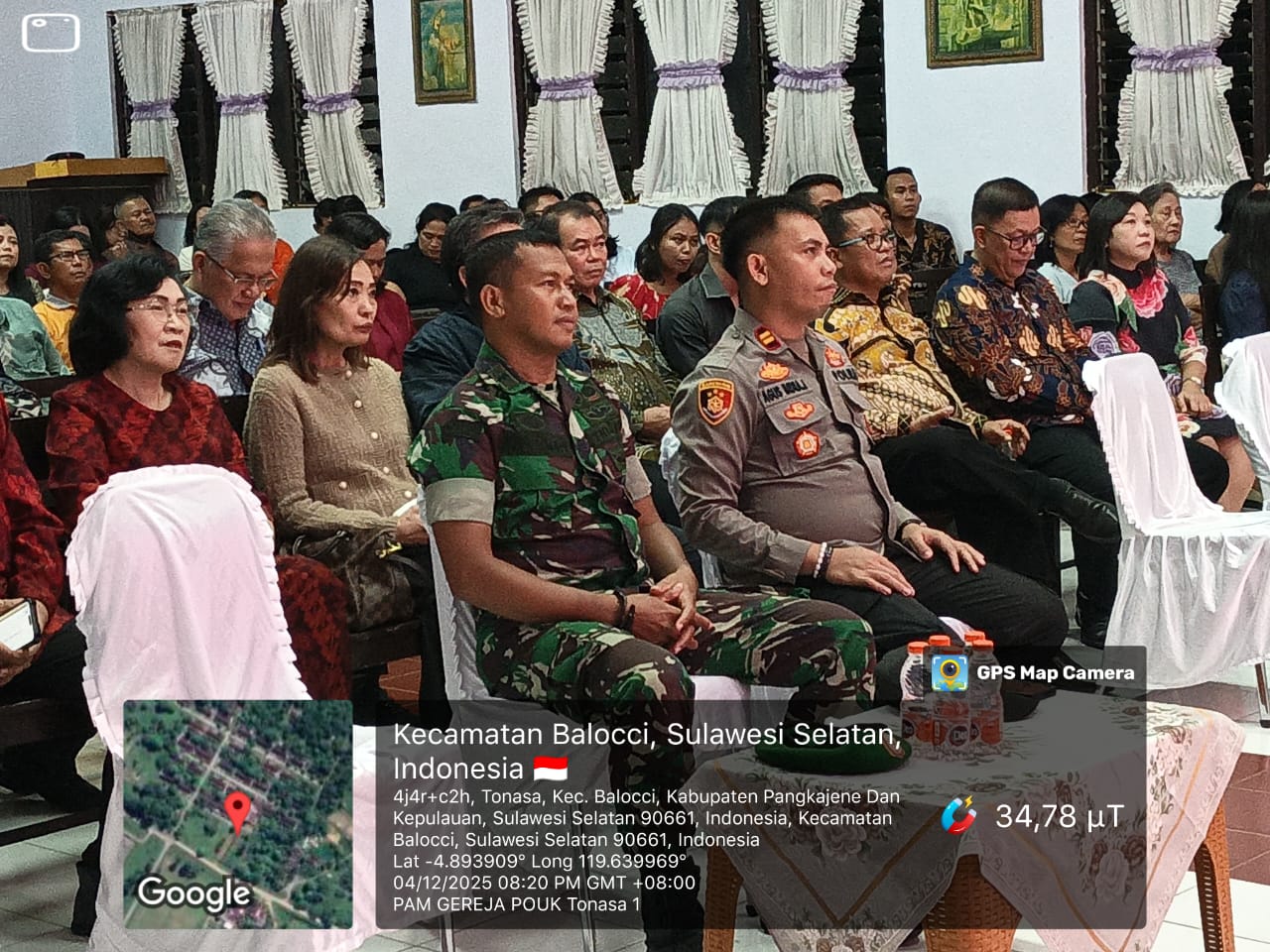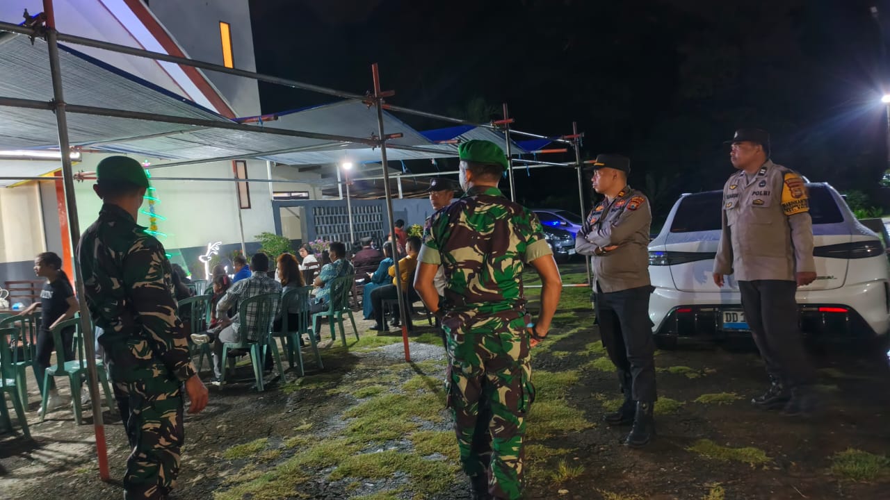 klivetvindonesia.com,Pangkep tonasa Dalam rangka memastikan keamanan dan kenyamanan masyarakat dalam menjalankan ibadah, Koramil 1421-01/Balocci bersama unsur pengamanan wilayah melaksanakan kegiatan Pengamanan (PAM) Rangkaian Ibadah Syukur dan Natal Gabungan Jemaat GPdI (Gereja Pantai Costa di Indonesia). Kegiatan ini berlangsung pada Kamis, 04 Desember 2025, mulai pukul 18:30 WITA bertempat di Gereja POUK Tonasa 1, Kelurahan Tonasa, Kecamatan Balocci, Kabupaten Pangkep.