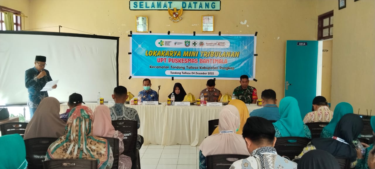 klivetvindonesia.com,Tondong Tallasa, Pangkep—Upaya meningkatkan mutu layanan kesehatan di Kecamatan Tondong Tallasa kembali diperkuat melalui pelaksanaan Lokakarya Mini Tribulanan UPT Puskesmas Bantimala, yang digelar pada Kamis, 04 Desember 2025, pukul 09.15 Wita. Kegiatan ini berlangsung di Aula Kantor Kecamatan Tondong Tallasa dan dihadiri berbagai unsur pemerintahan, tenaga kesehatan, TNI–Polri, serta tokoh masyarakat.