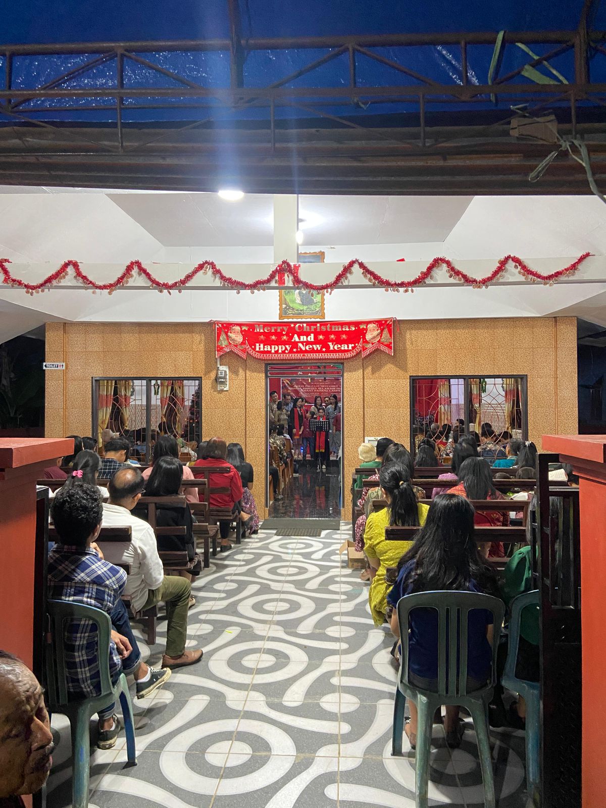 Ibadah dipimpin oleh Pendeta Alma Cristin Maigak, S.Th, dan diikuti sekitar 120 jemaat dengan penuh khidmat. Perayaan Natal tahun ini mengusung tema “Allah Hadir Menyelamatkan Keluarga”, yang mengajak umat untuk memperkuat iman, kesatuan keluarga, serta menumbuhkan rasa kasih dalam kehidupan sehari-hari.