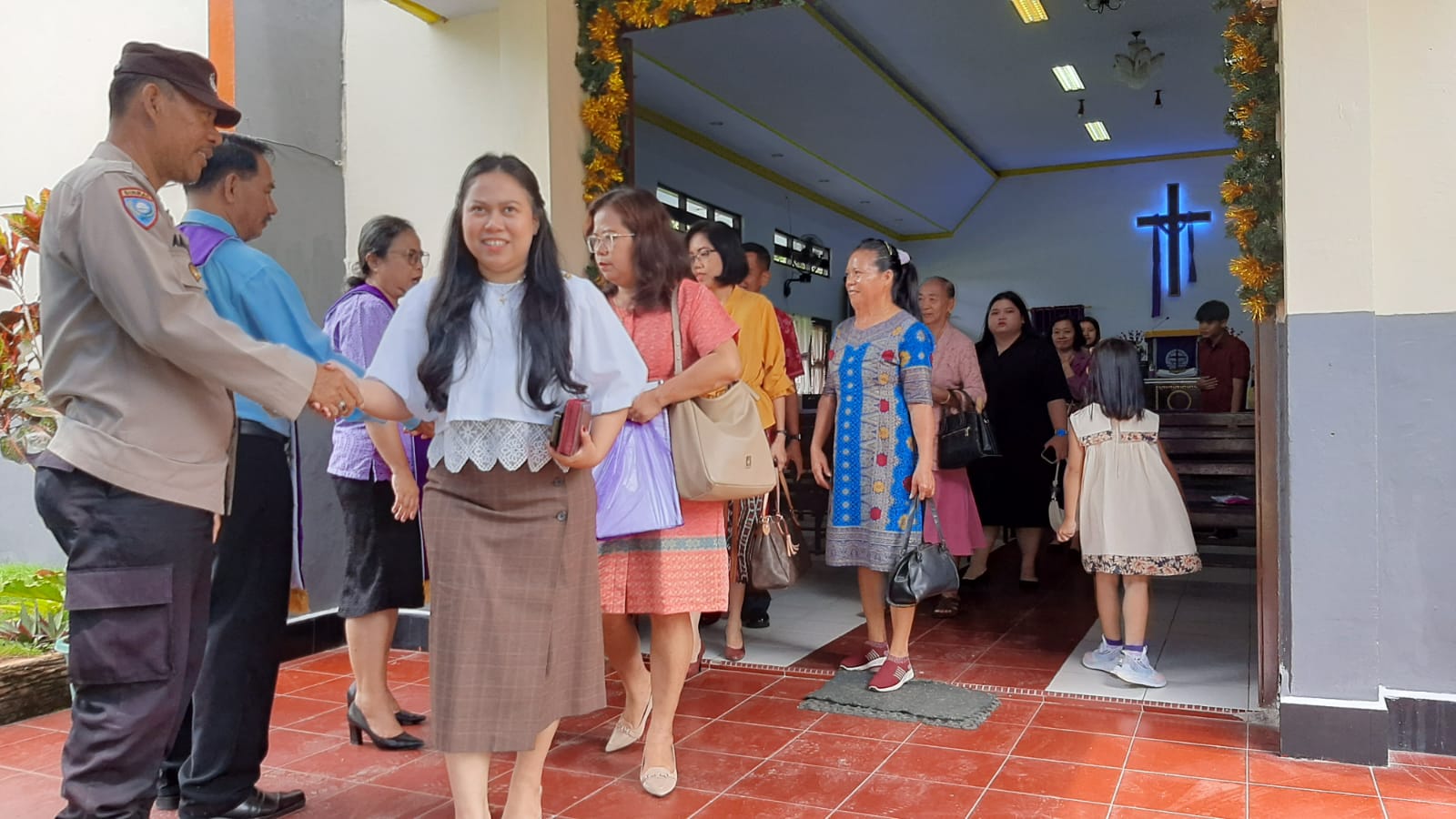Selain memantau situasi, Aipda Amiruddin juga menyampaikan pesan Kamtibmas kepada jemaat, meminta agar tetap waspada terhadap hal ~ hal mencurigakan dan segera melaporkan kepada pihak kepolisian jika terdapat gangguan. Ia juga menekankan pentingnya menjaga keharmonisan antar umat beragama di lingkungan sekitar.