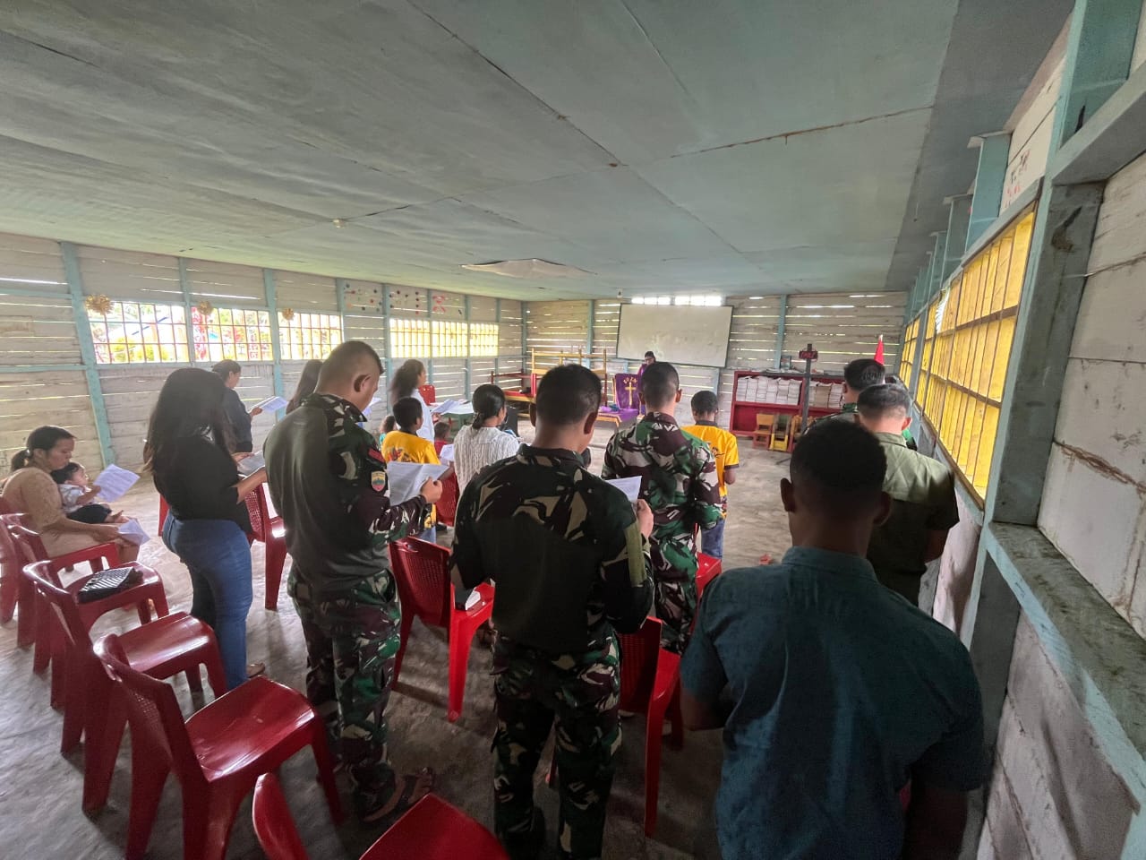 Usai mengikuti rangkaian ibadah, personel satgas melanjutkan kegiatan komunikasi sosial (komsos) dengan para tokoh agama dan warga setempat. Dalam kesempatan tersebut, prajurit juga menyerahkan bantuan Alkitab sebagai sarana pembinaan teritorial dan penggalangan.