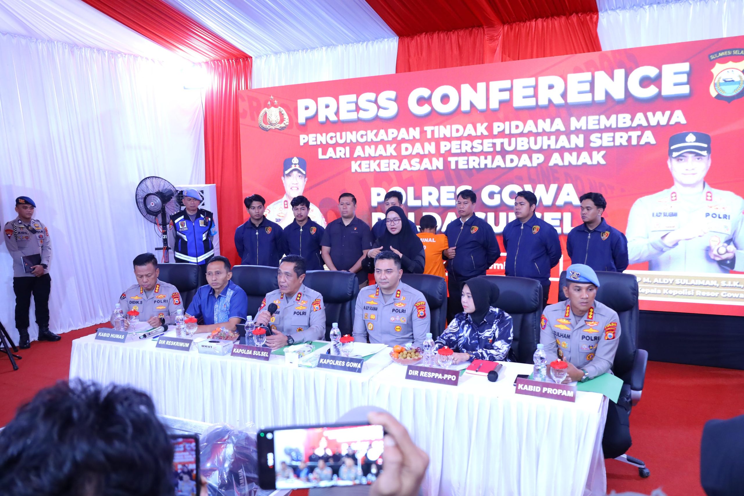 Kapolda Sulsel Pimpin Press Conference Pengungkapan Kasus Kekerasan dan Pencabulan Anak di Gowa
