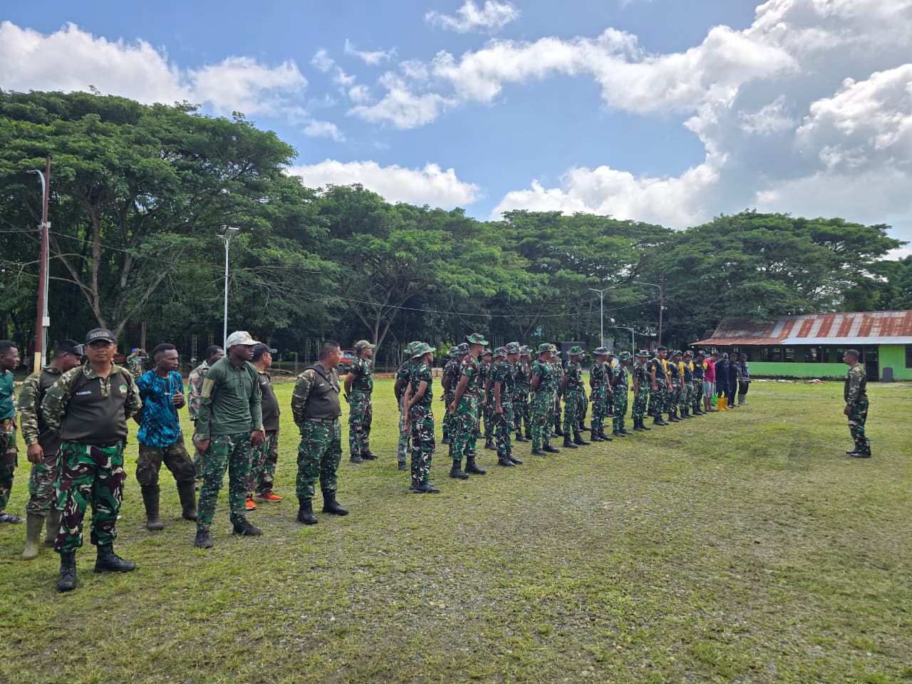 –klivetvindonesia.com– Kampung Pasaman, Teluk Bintuni – Korum Yonif 763/SBA melaksanakan kegiatan Karya Bhakti sebagai wujud kepedulian dan pengabdian kepada masyarakat di Gereja Katolik St. Paskalis, Kampung Pasaman, Kabupaten Teluk Bintuni, (11/12/2025).