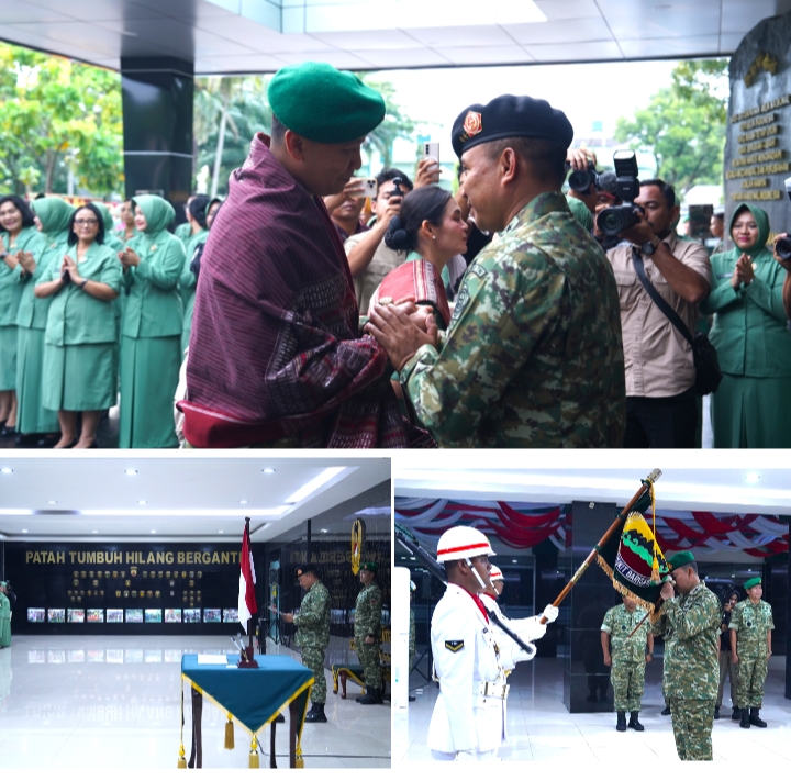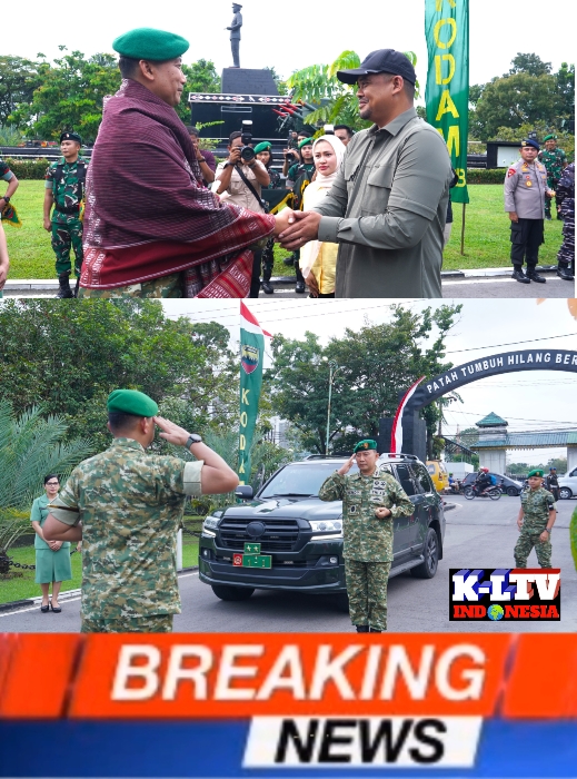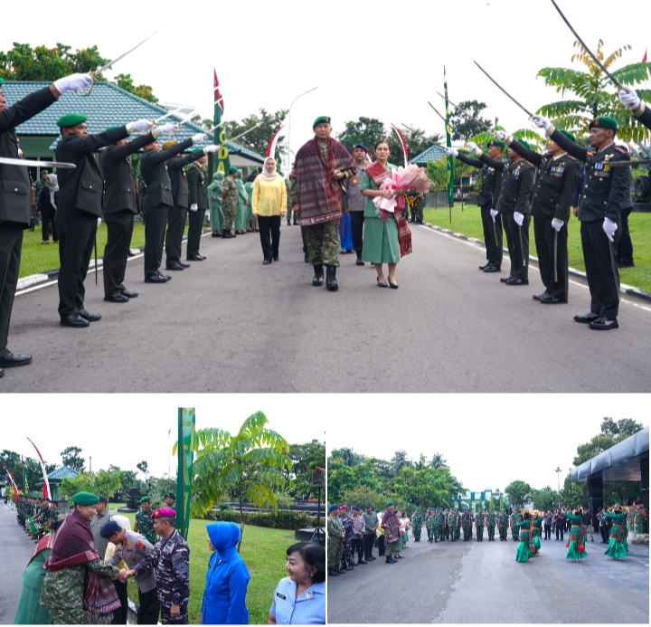 –klivetvindonesia.com– Medan – Panglima Kodam I/Bukit Barisan, Mayjen TNI Hendy Antariksa, bersama Ketua Persit Kartika Chandra Kirana Daerah I/Bukit Barisan, Ny. Linda Hendy Antariksa, tiba dan disambut secara resmi di Markas Kodam I/BB, Sabtu (13/12/2025). Kedatangan Pangdam I/BB beserta Ibu disambut melalui rangkaian tradisi korps militer dan adat sebagai bentuk penghormatan serta penerimaan resmi di lingkungan Kodam I/Bukit Barisan.
